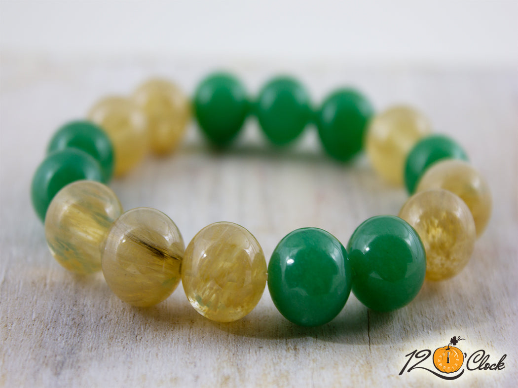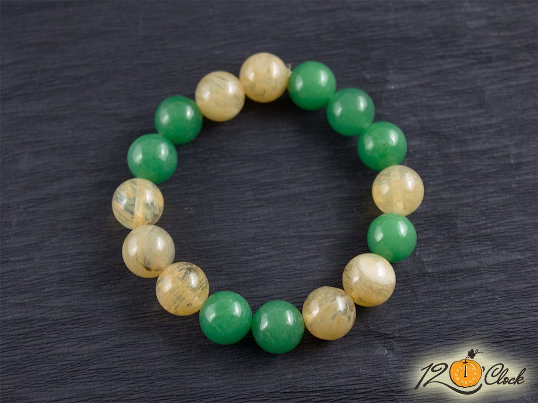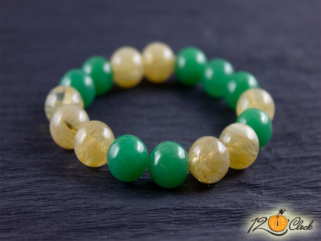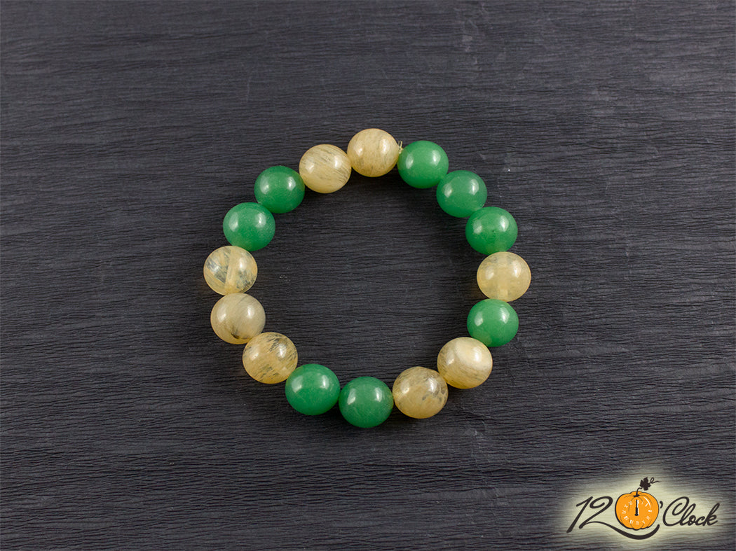Ръчно изработена гривна с основа еластична корда и комбинация между косите на Венера 12 мм и авантюрин 12 мм