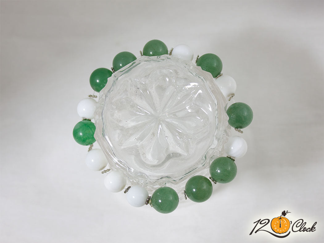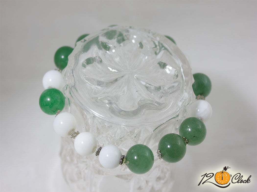 Ръчно изработена гривна от еластична корда и комбинация между авантюрин 12 мм и седеф 10 мм. Към камъните са добавени сребристи разделители