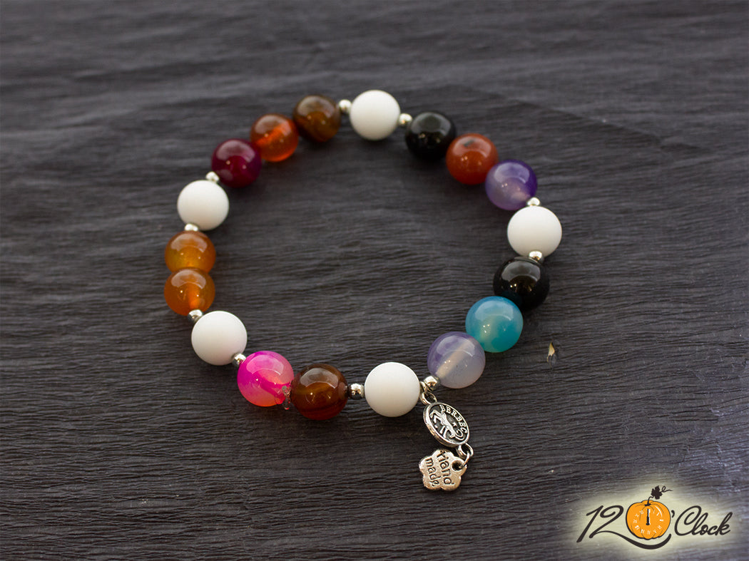 Гривна "Бял и цветен ахат" - Зодия Овен