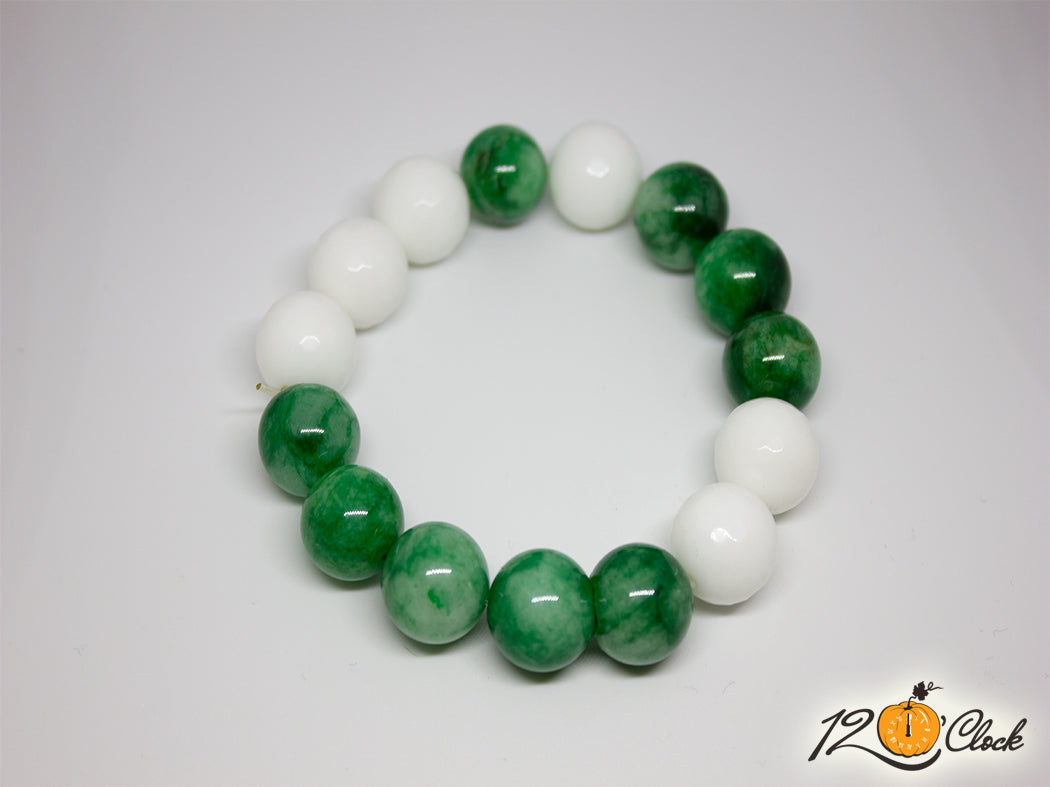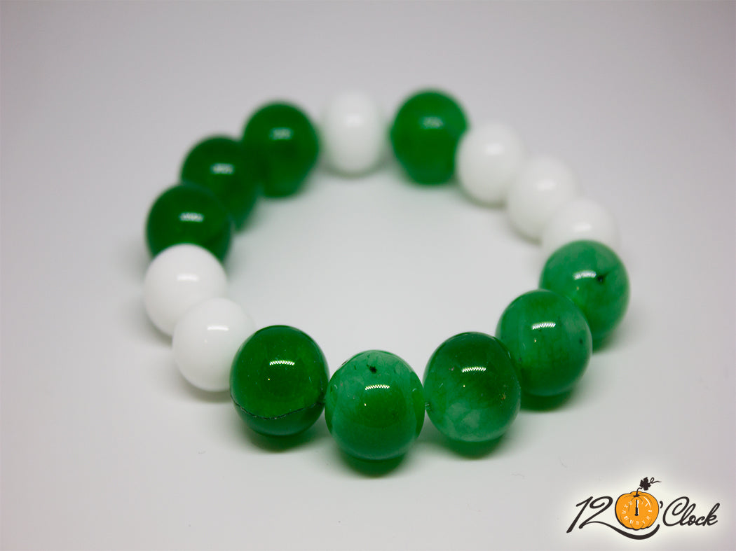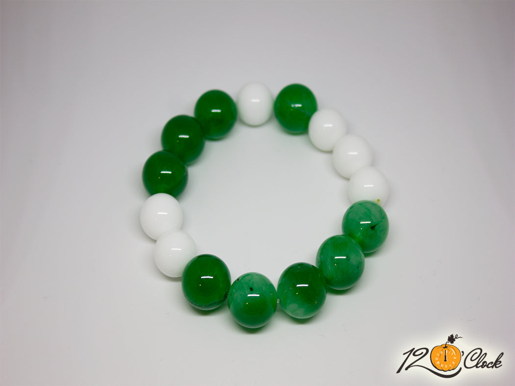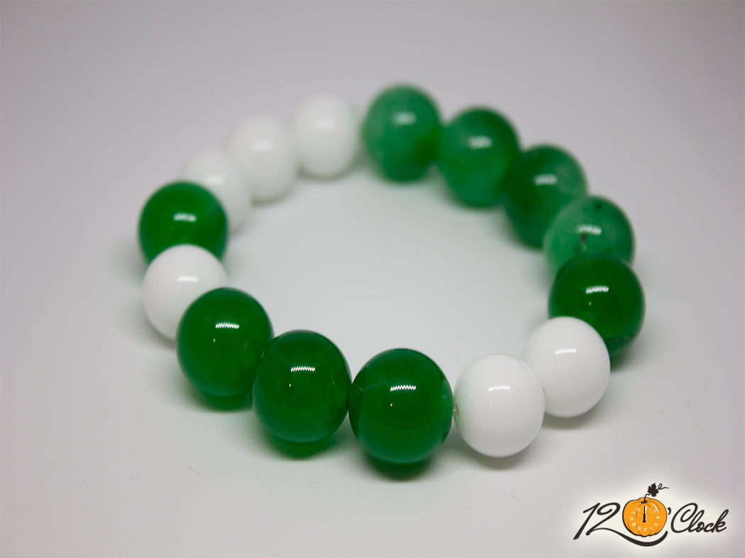 Гривна от ахат в два цвята - бял и зелен, с размери 14 мм
