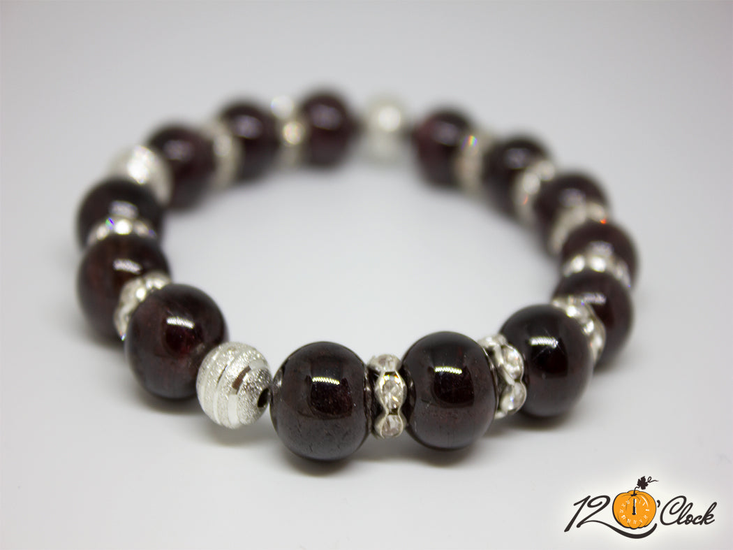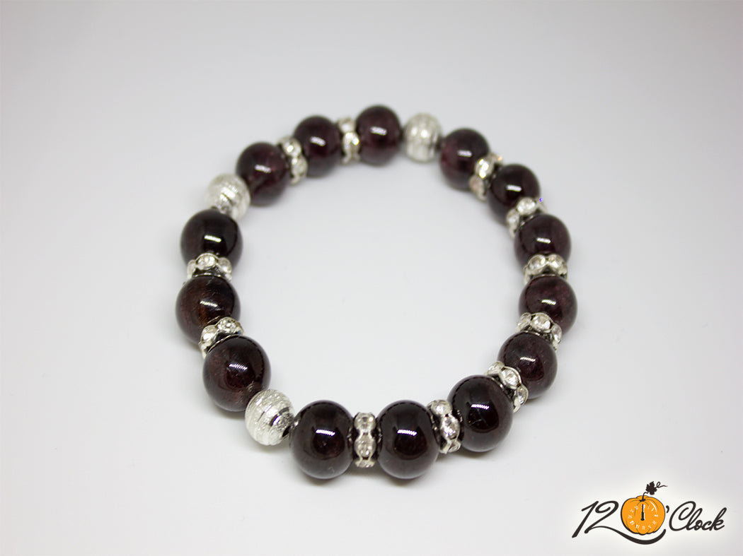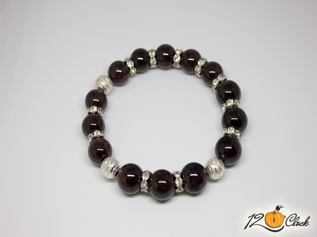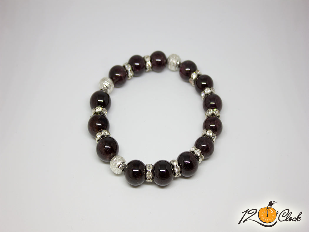 Гривна, изработена от гранат 12 мм и 10 мм, комбиниран със сребристи топчета и бляскави декорации