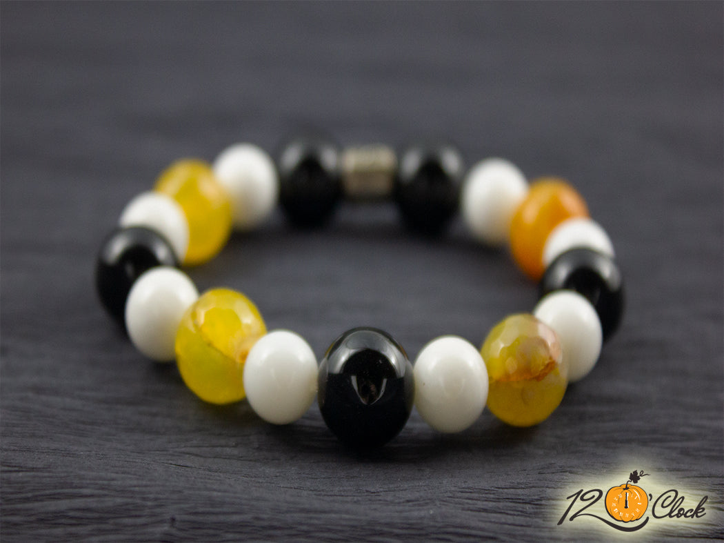 Гривна "Оникс, жълт ахат и седеф" - Зодия Рак