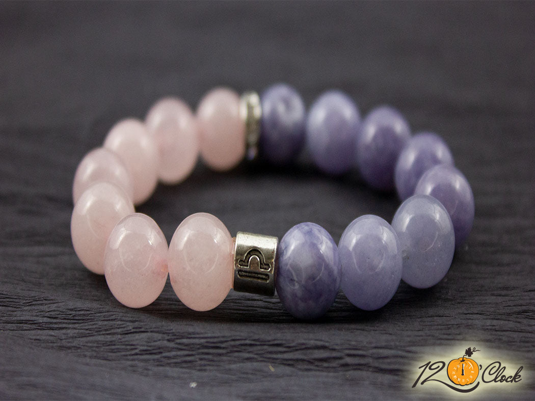 Гривна "Розов кварц и аквамарин" - Зодия Везни
