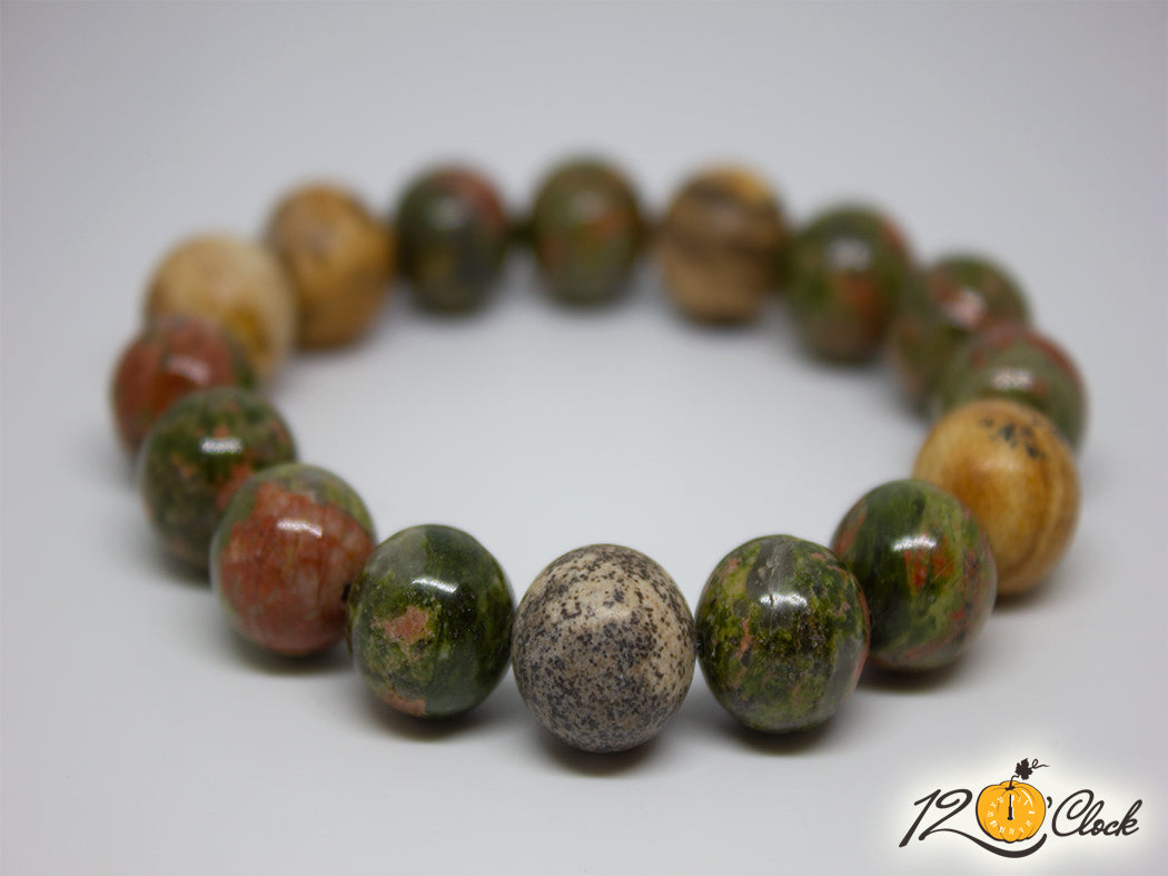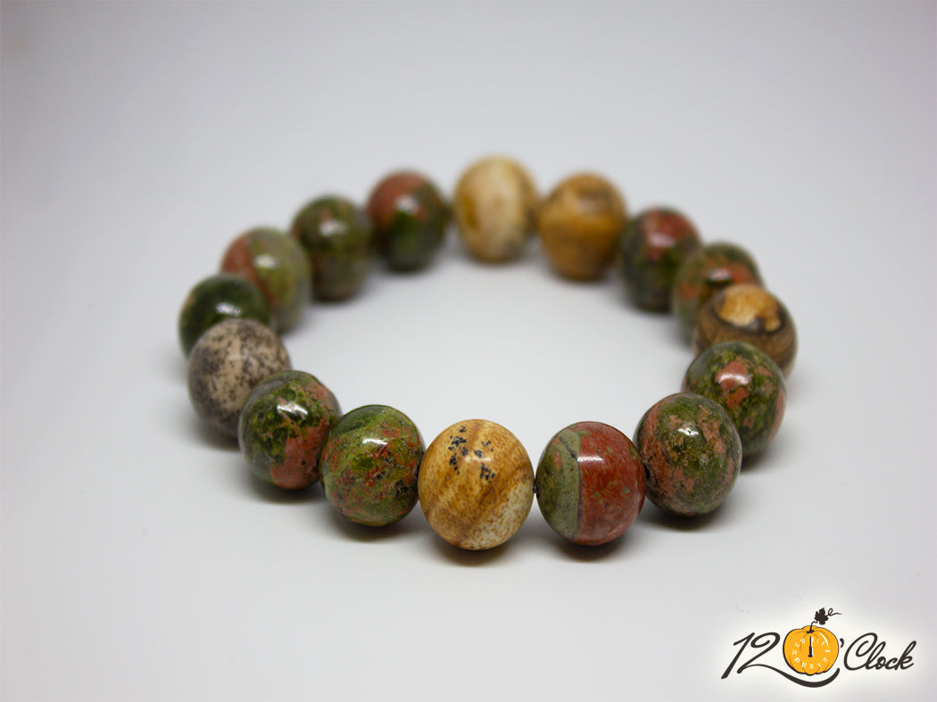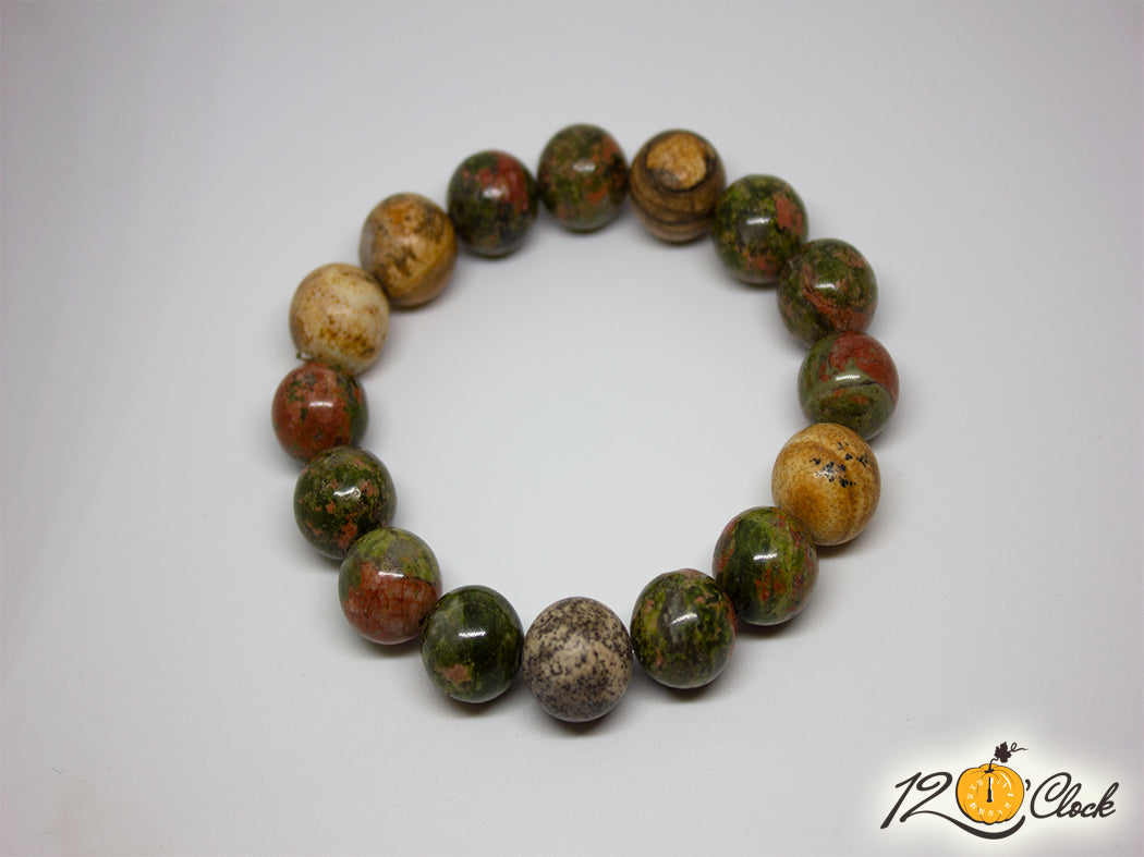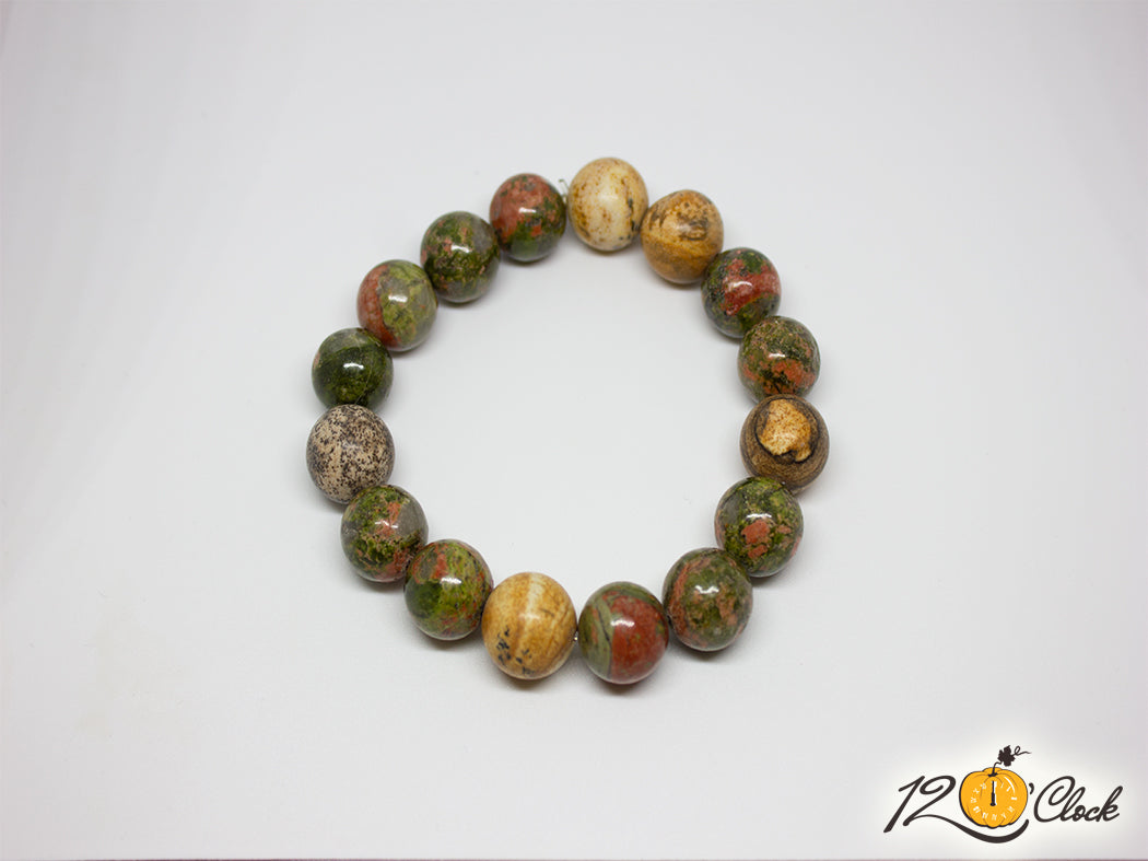 Ръчно изработена гривна от яспис и унакит 12 мм