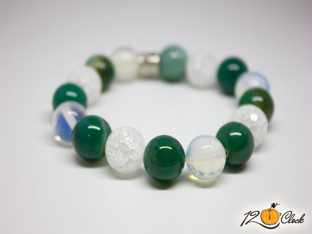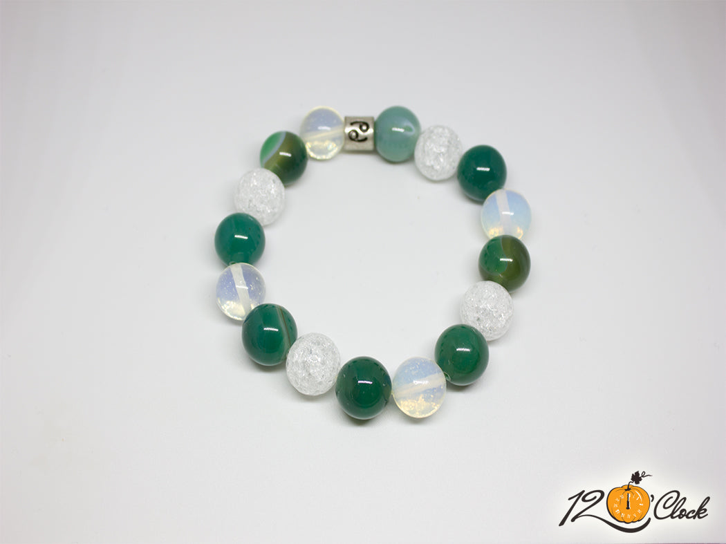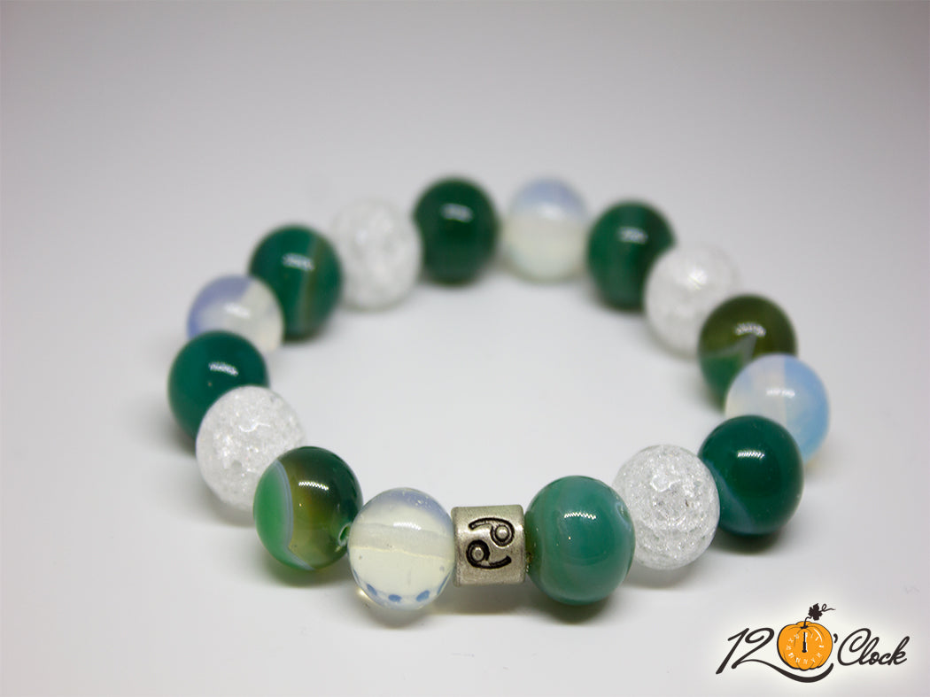 Гривна "Зелен ахат, лунен камък и планински кристал" - Зодия Рак