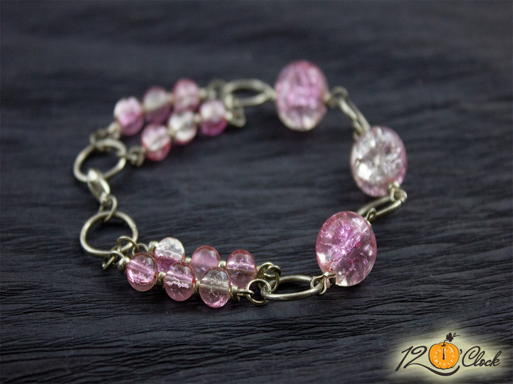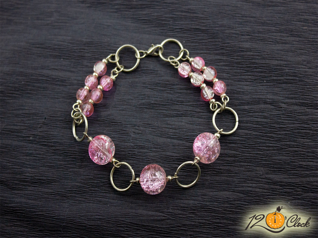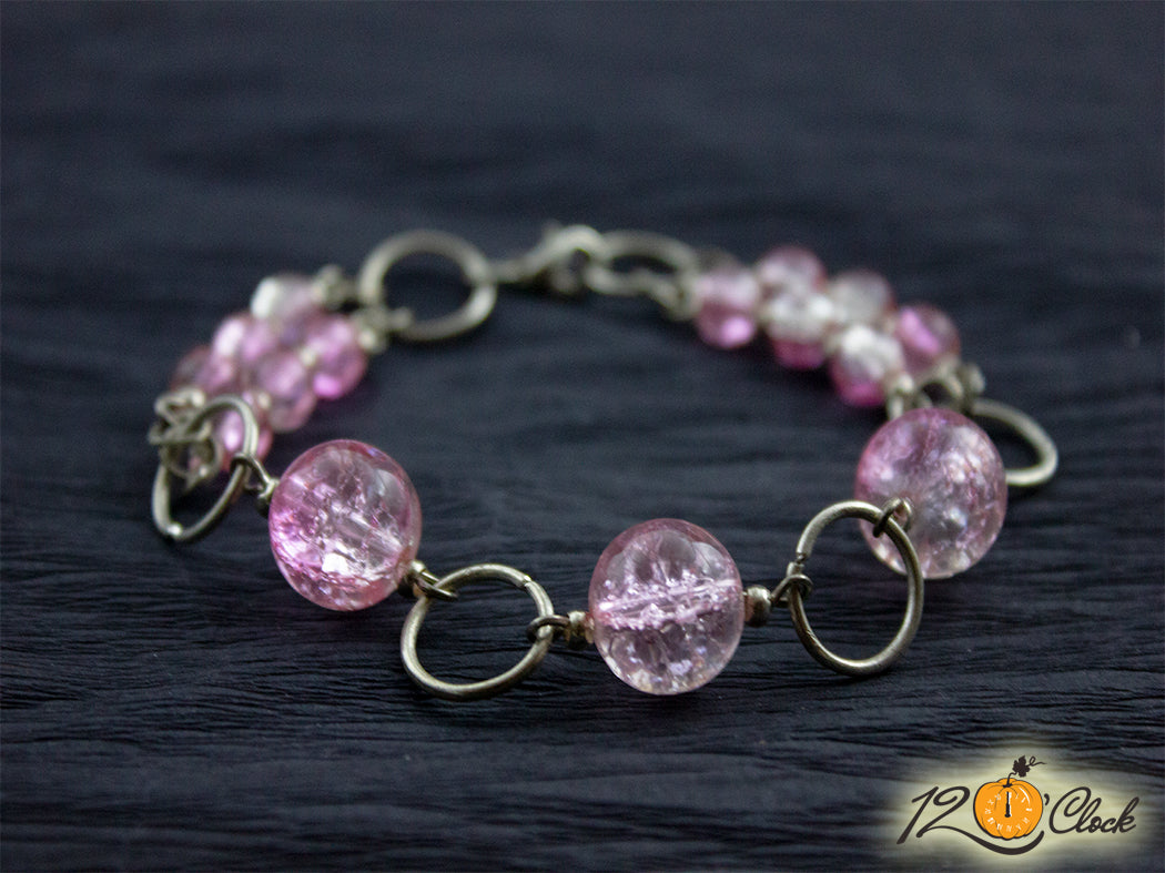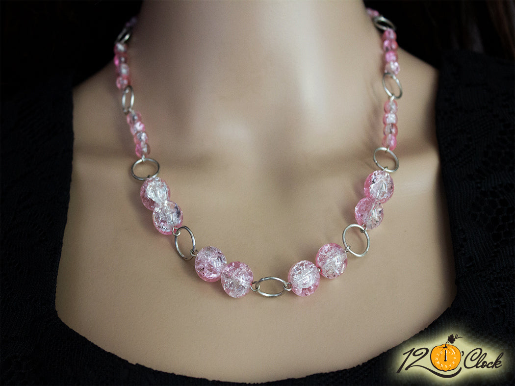 Комплект от две части - колие и гривна от розови стъклени мниста - 10 мм и 6 мм и сребристи свързващи елементи