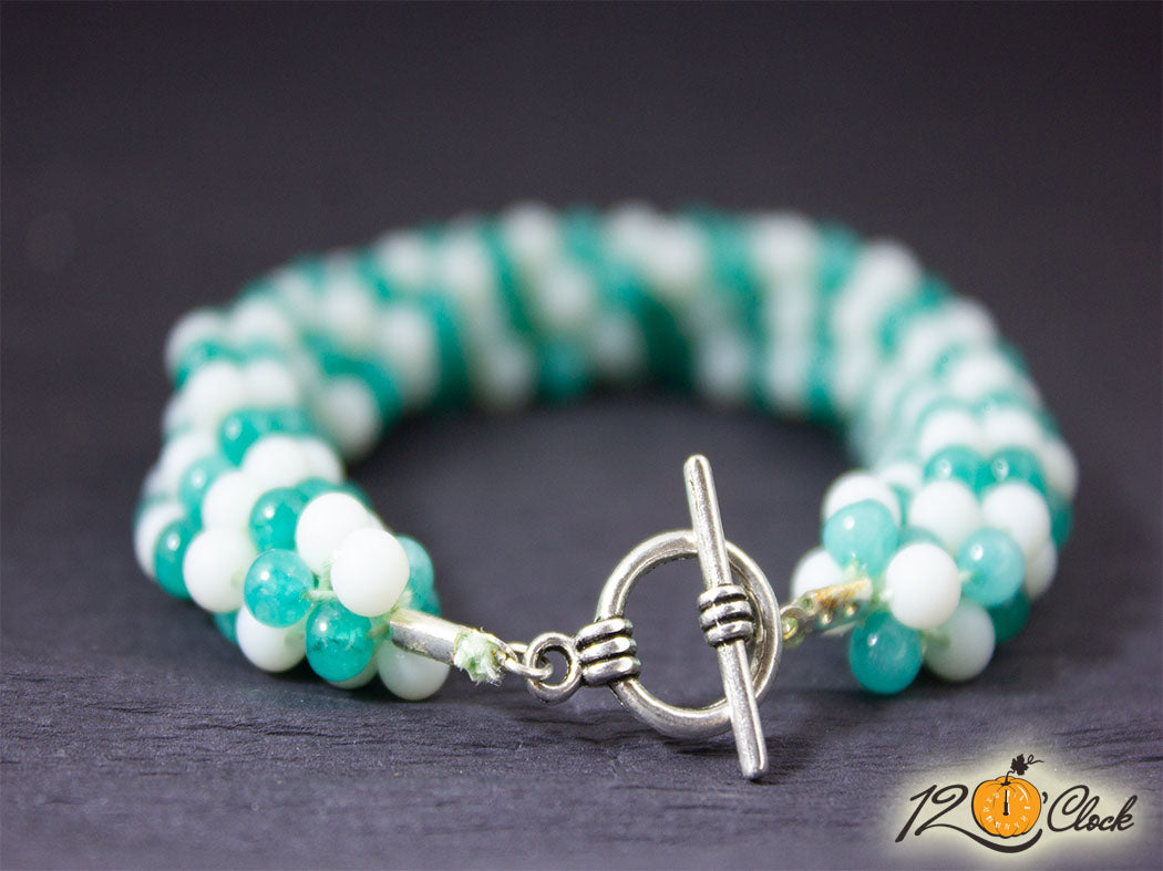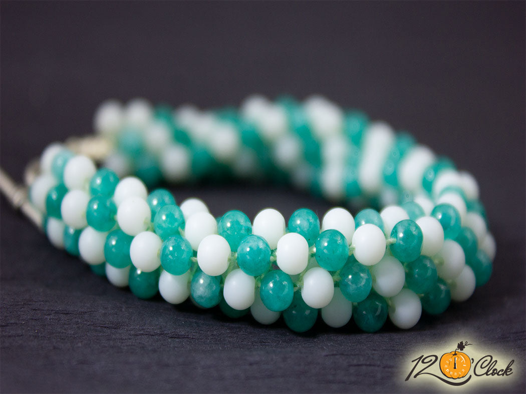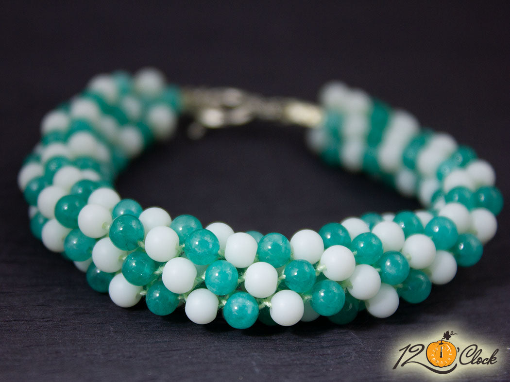 Кръгла плетеница "Аквамарин и бял ахат мат"