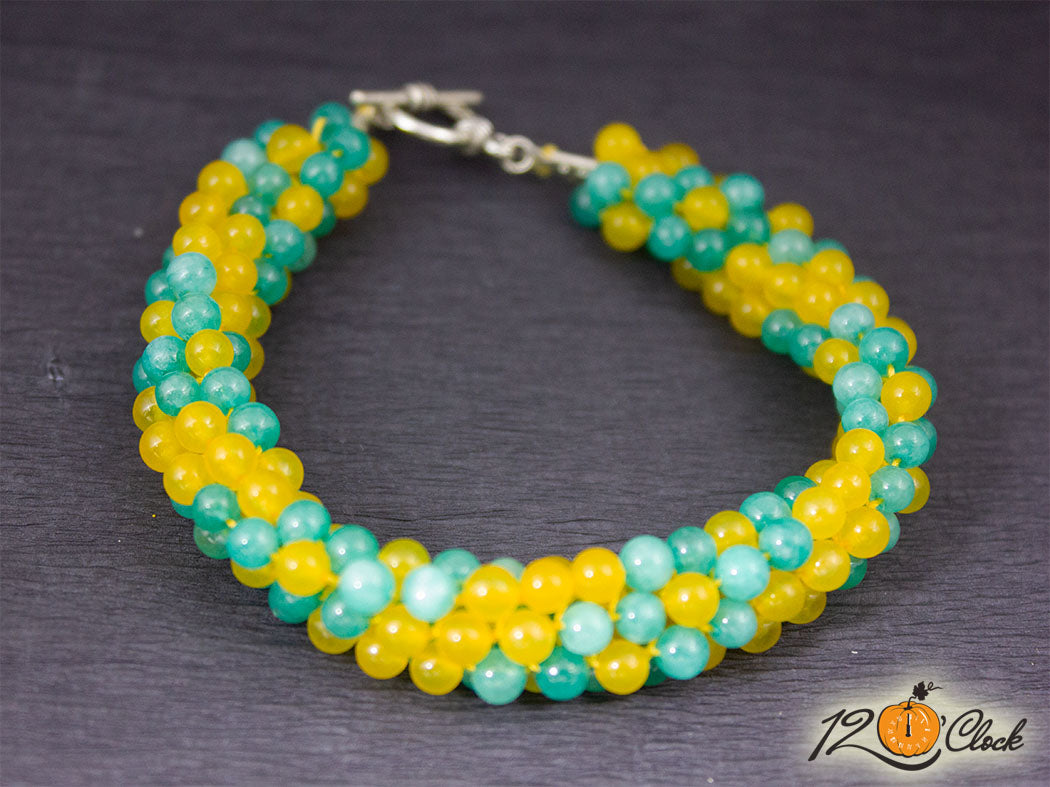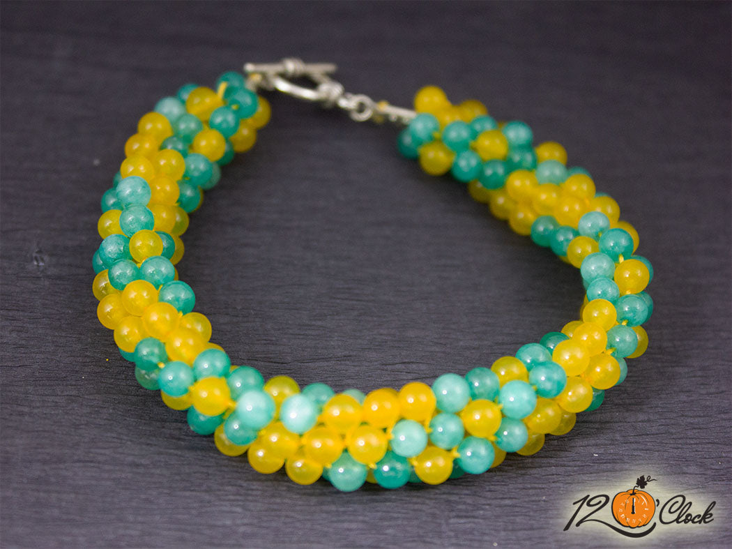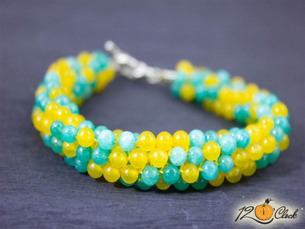 Кръгла плетеница "Жълт ахат и аквамарин"
