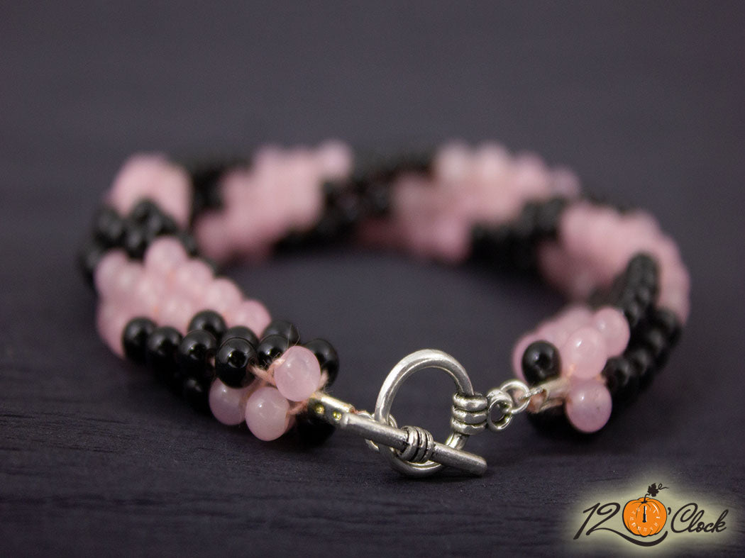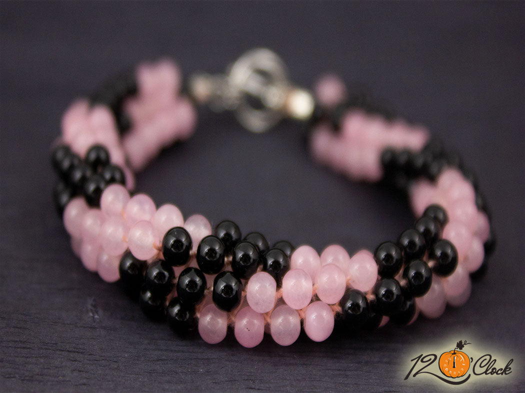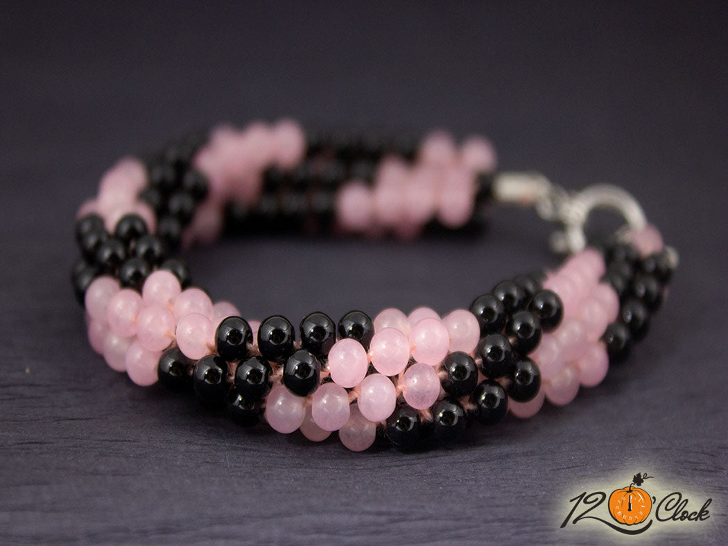 Кръгла плетеница "Розов кварц и оникс"