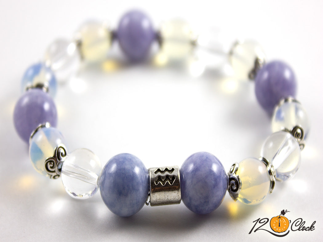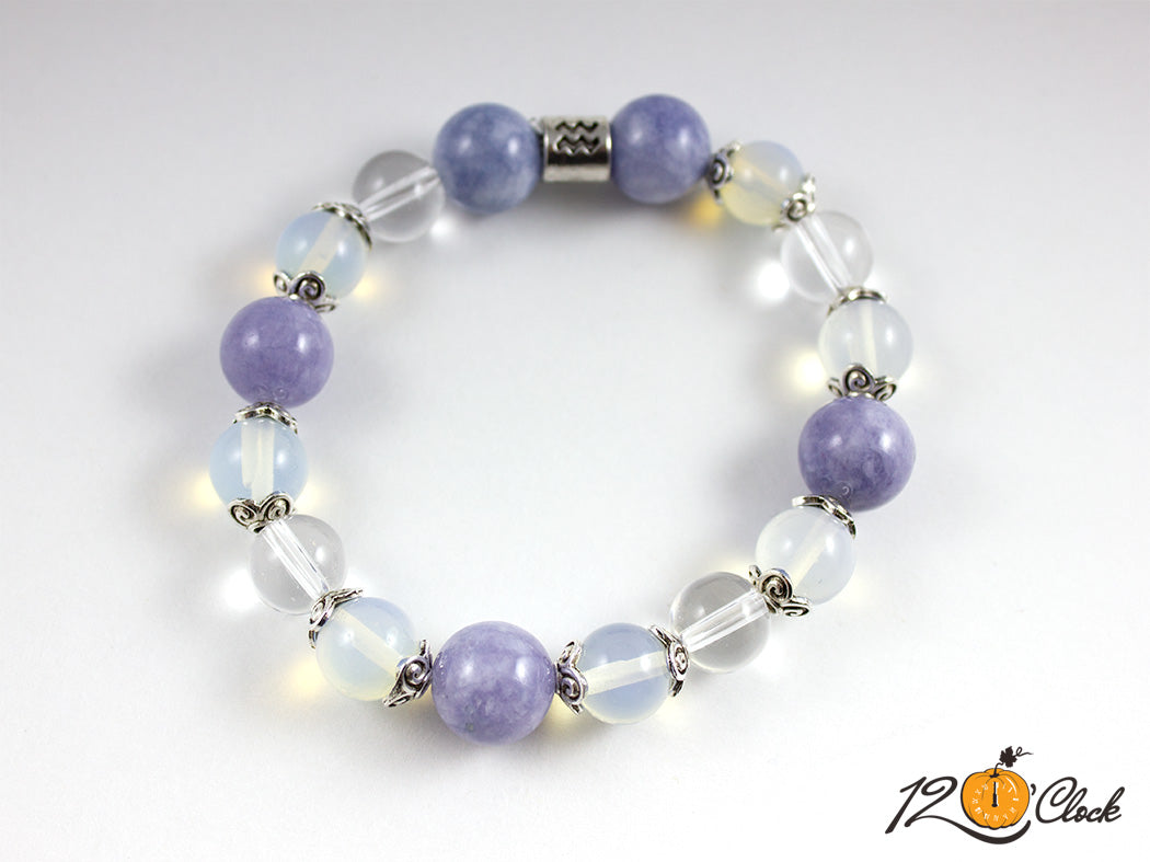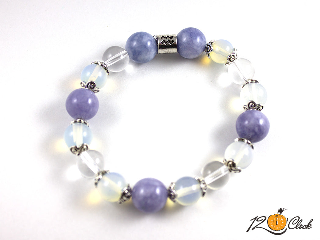 Гривна "Аквамарин, лунен камък и планински кристал" - зодия Водолей