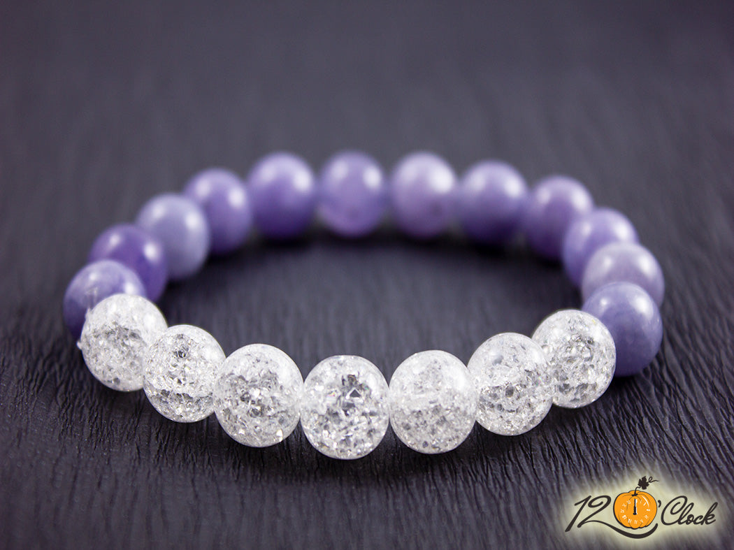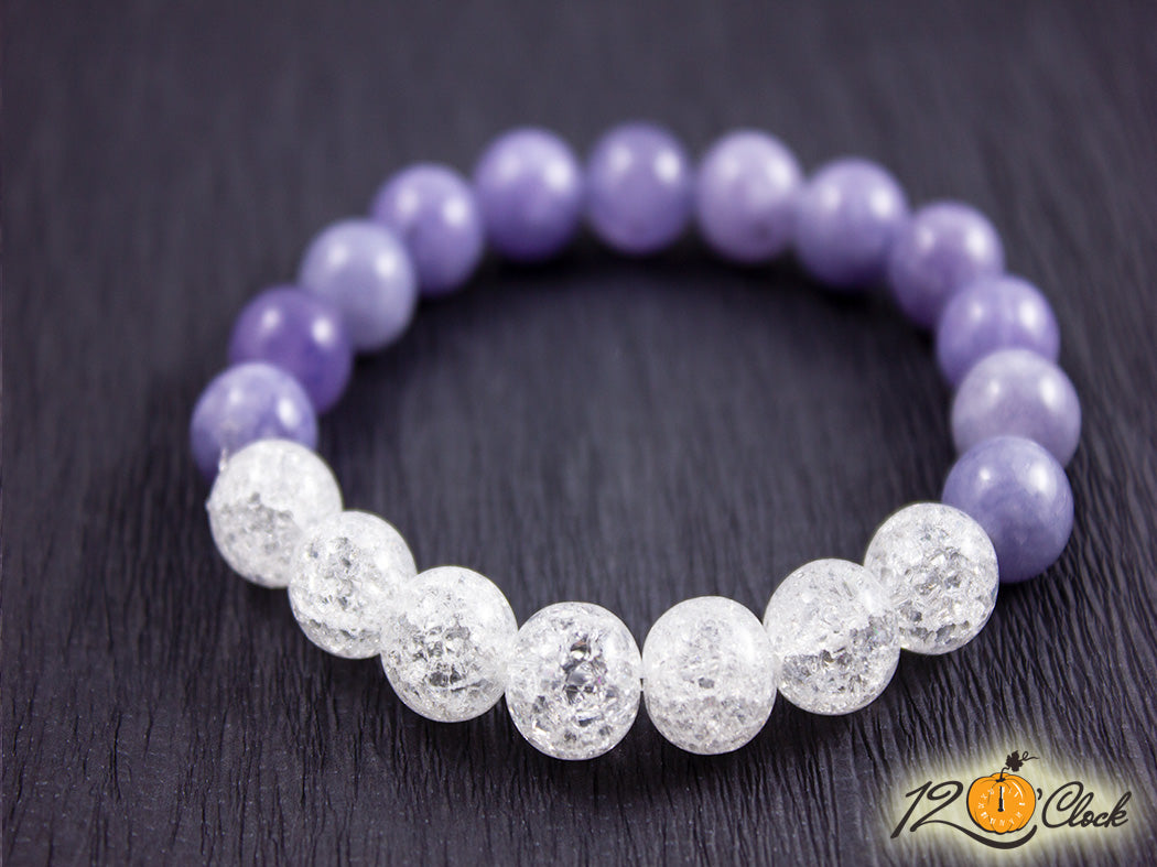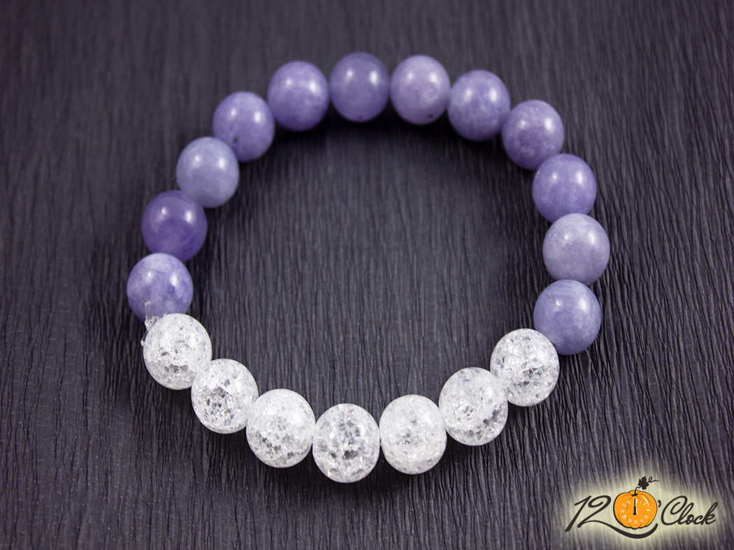 Ръчно изработена гривна от еластична корда, в комбинация от аквамарин 10 мм и напукан планински кристал 10 мм.