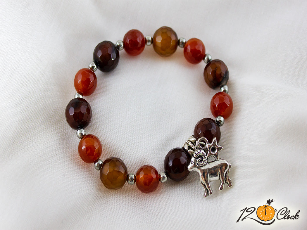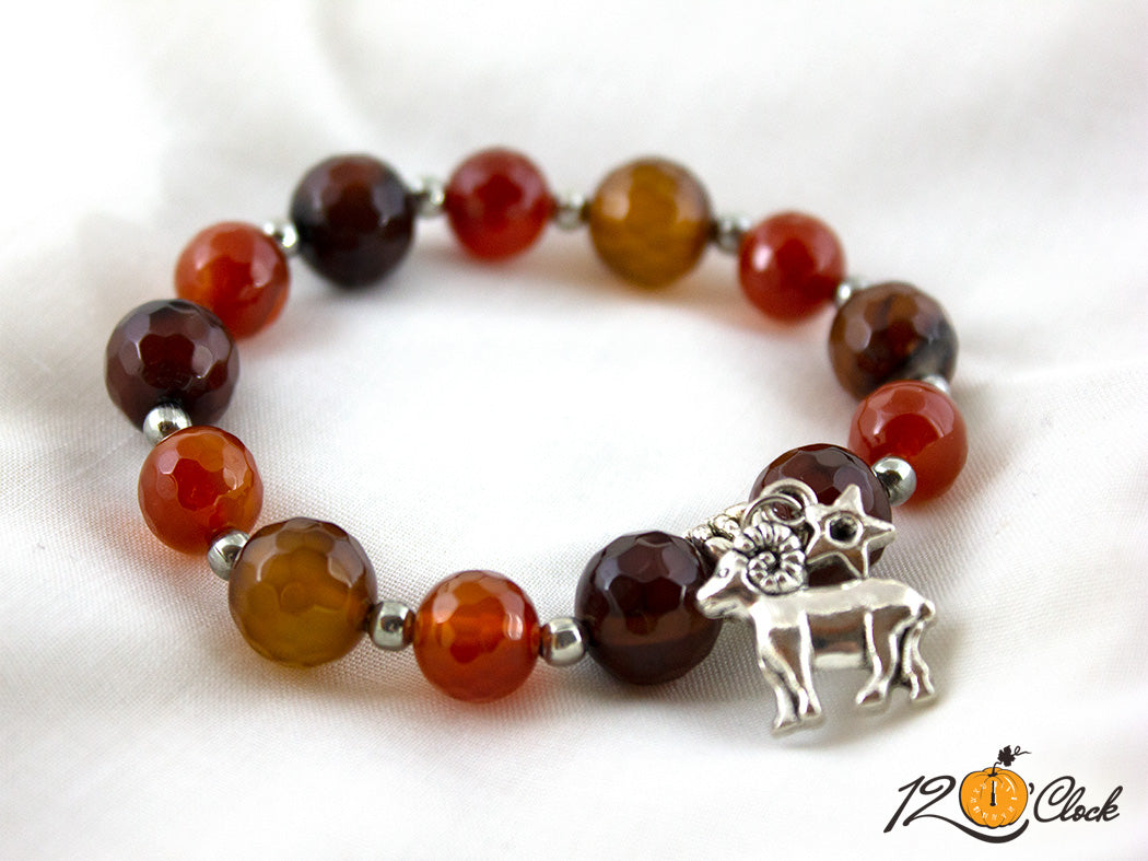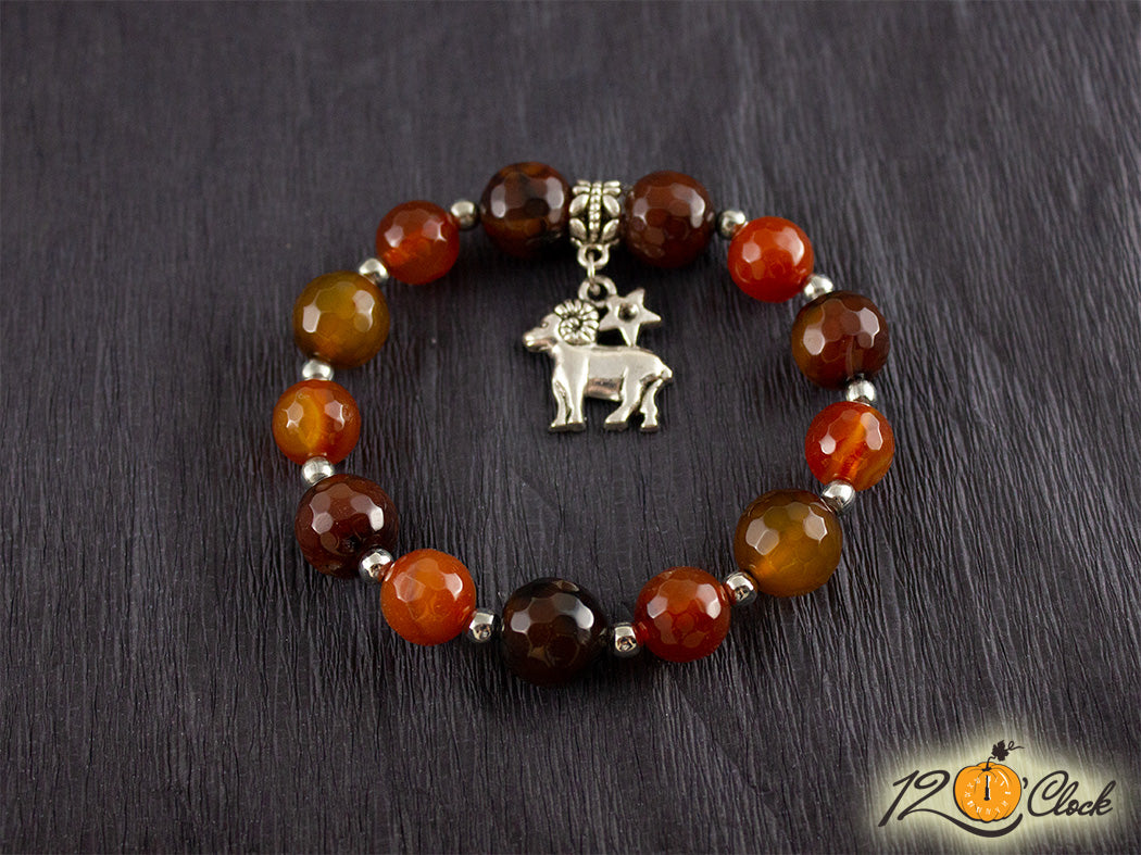 Ръчно изработена гривна от еластична корда, пръстен със зодиакална висулка, метални разделители,както и камъни от кафяв фасетиран ахат 12мм и фасетиран карнеол 10мм.