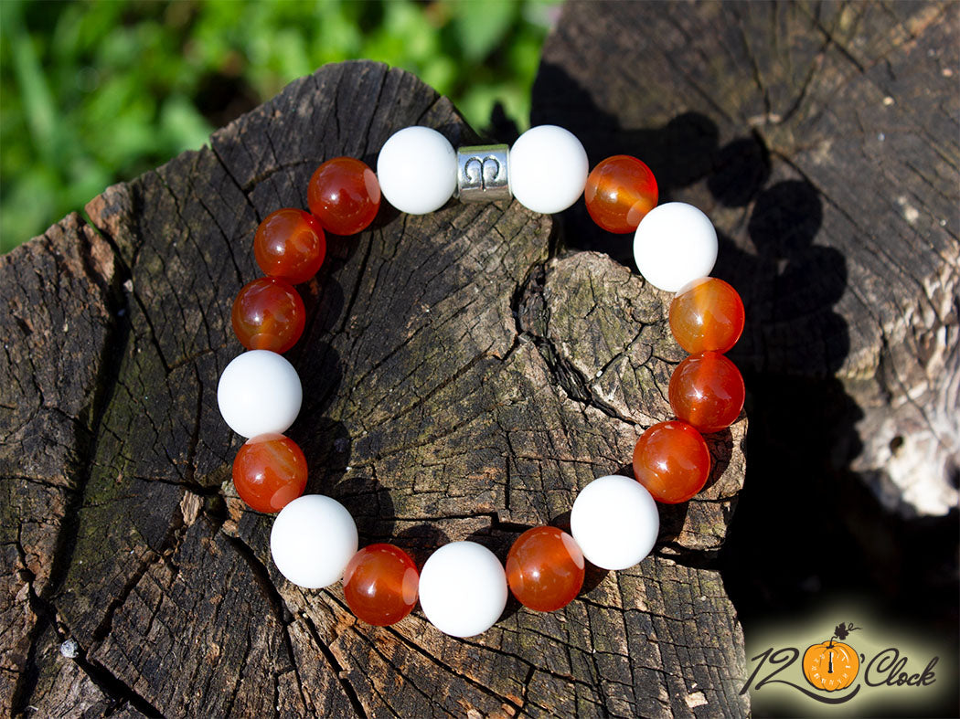 Гривна "Бял ахат мат и карнеол" - зодия Овен