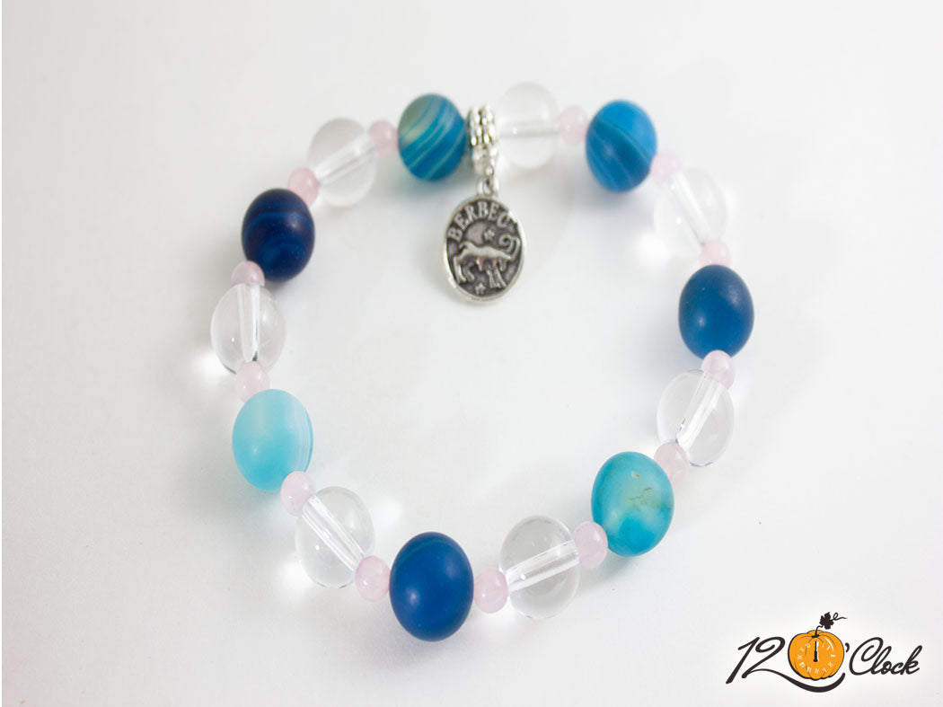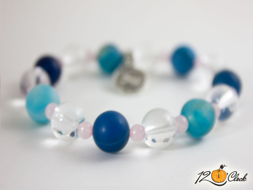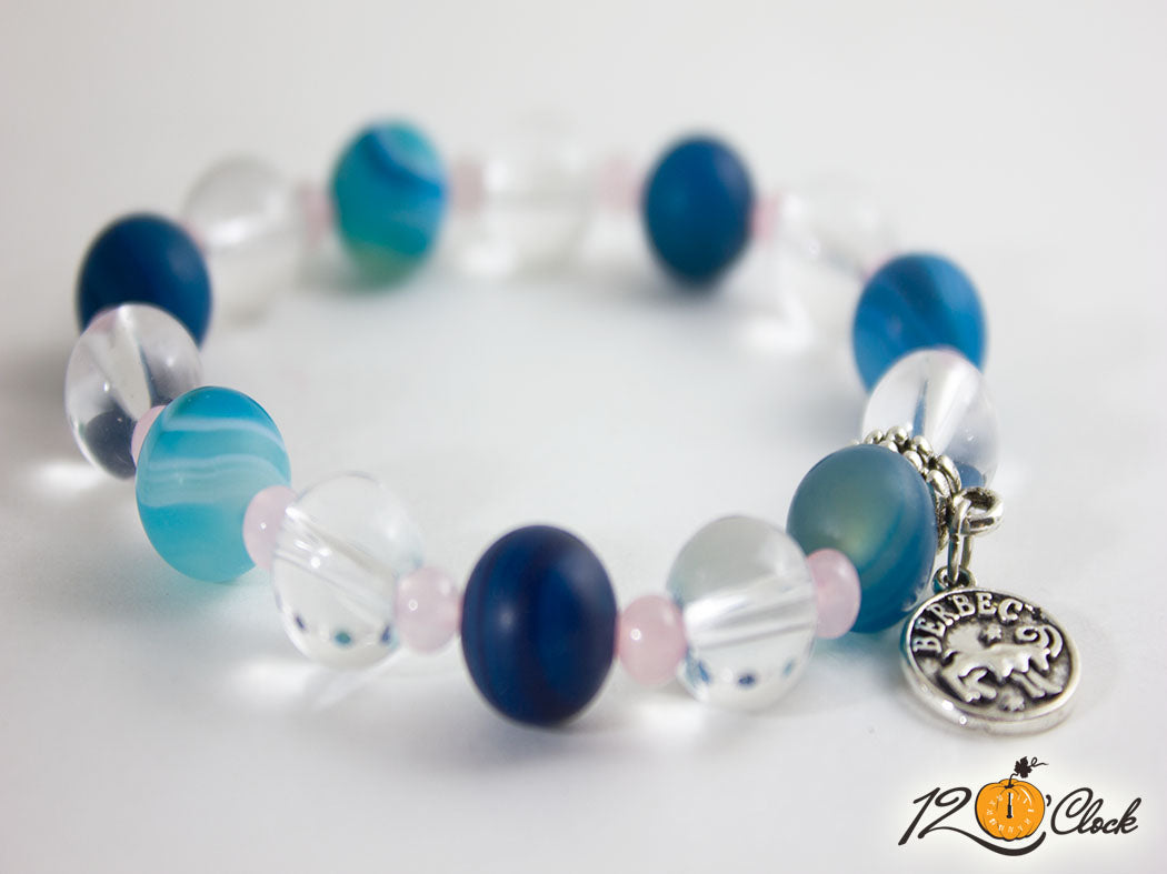 Гривна "Син ивчест ахат мат, планински кристал и розов кварц" - зодия Овен