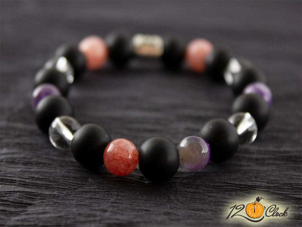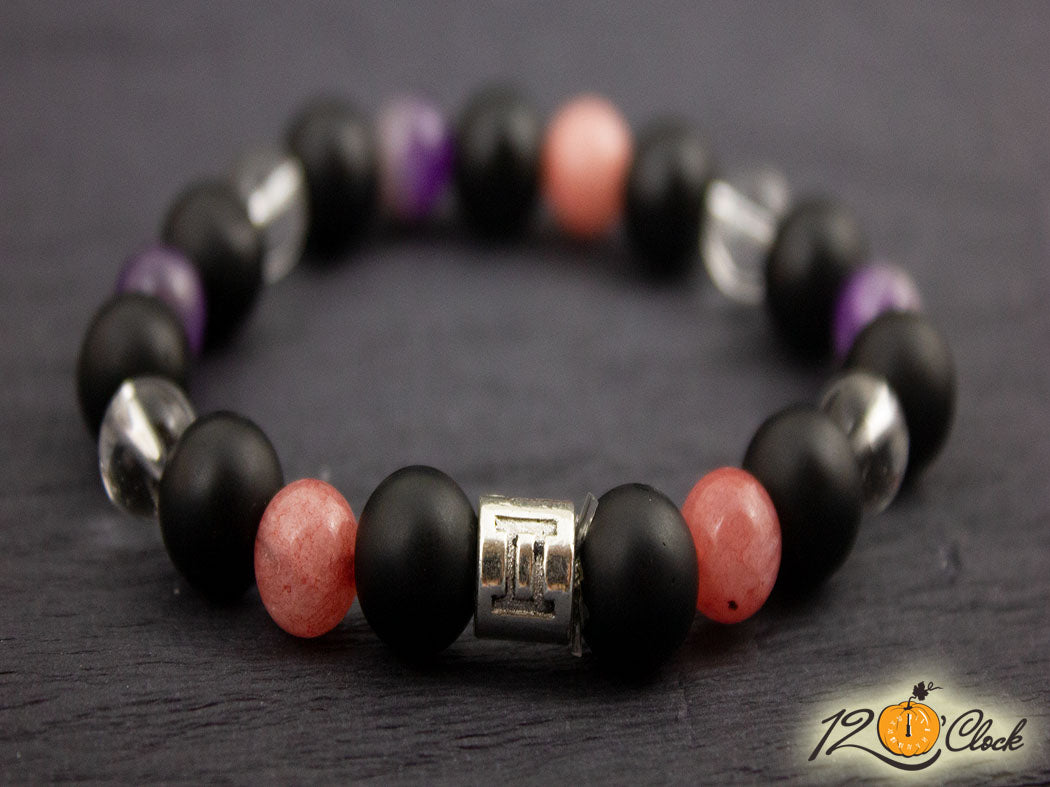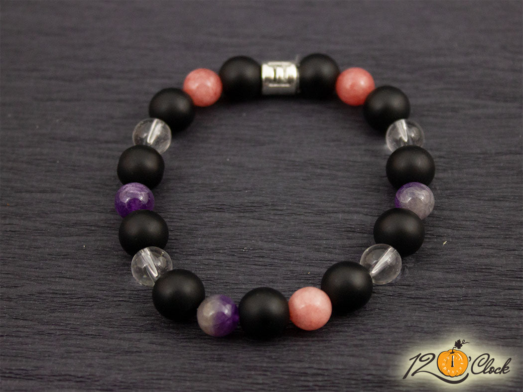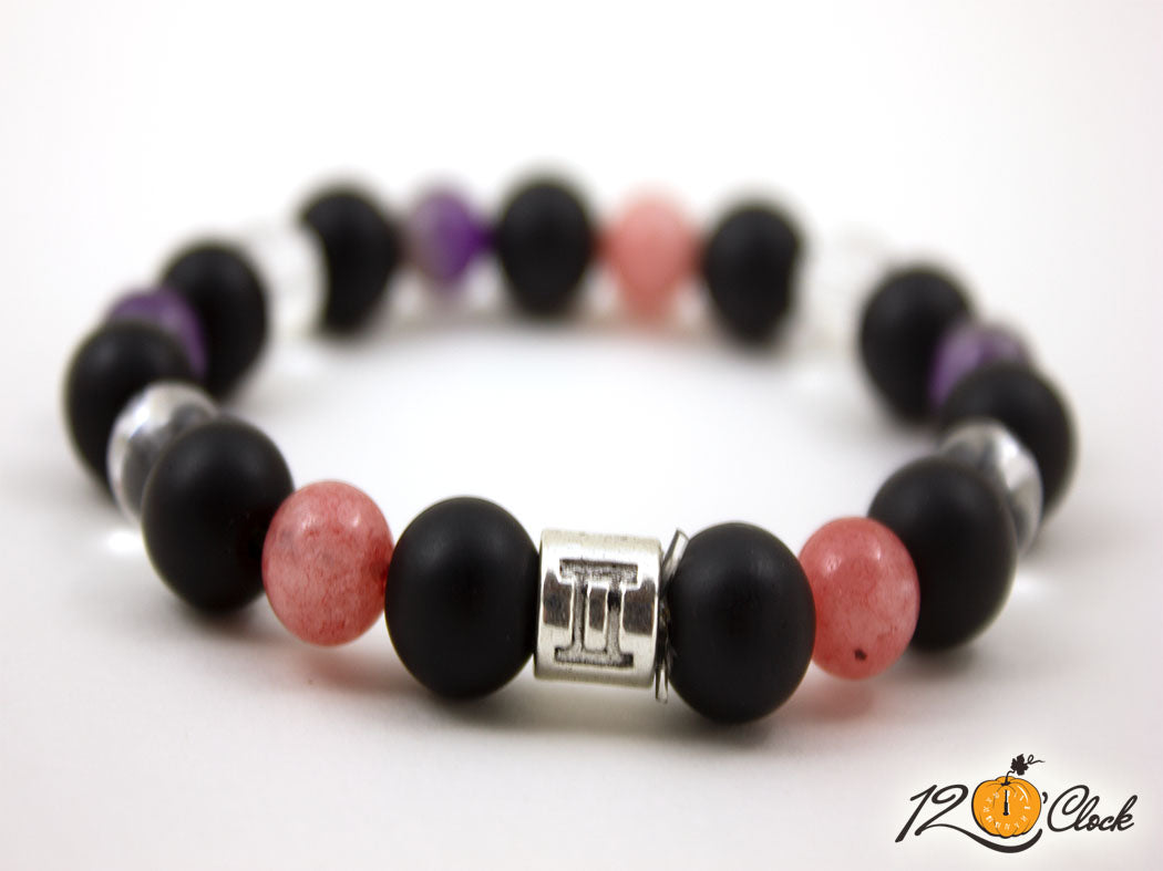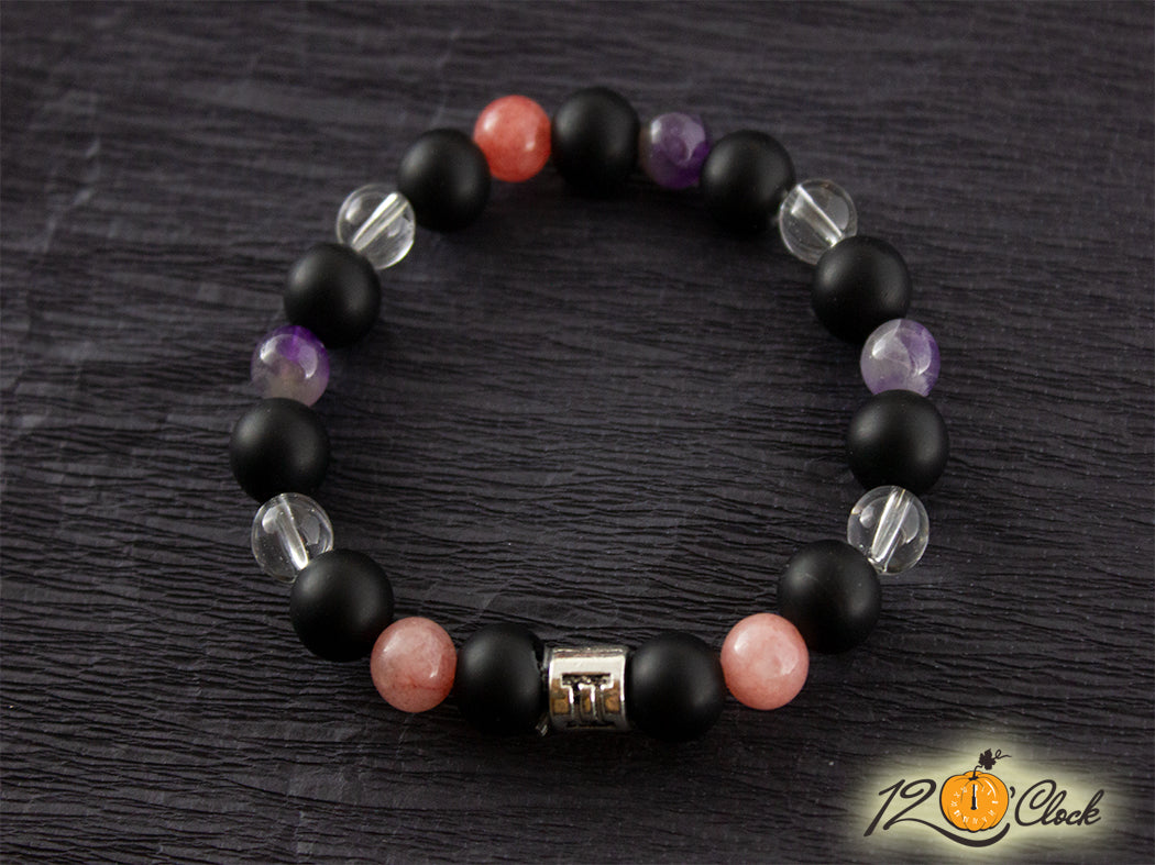 Гривна "Оникс, ягодов кварц, планински кристал и аметист" - зодия Близнаци