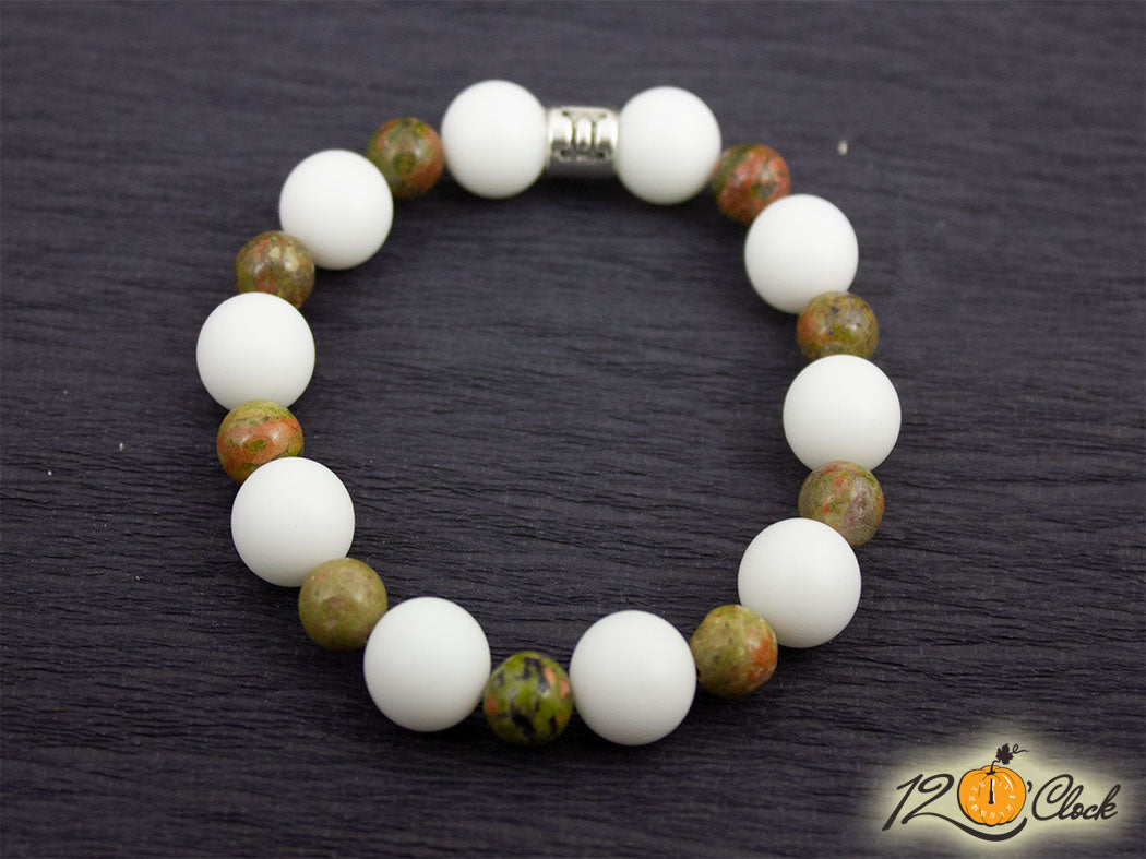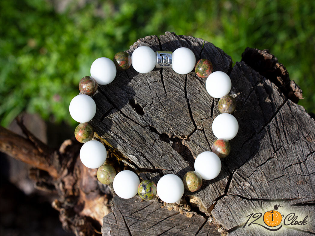 Гривна "Бял ахат мат и унакит" - зодия Близнаци