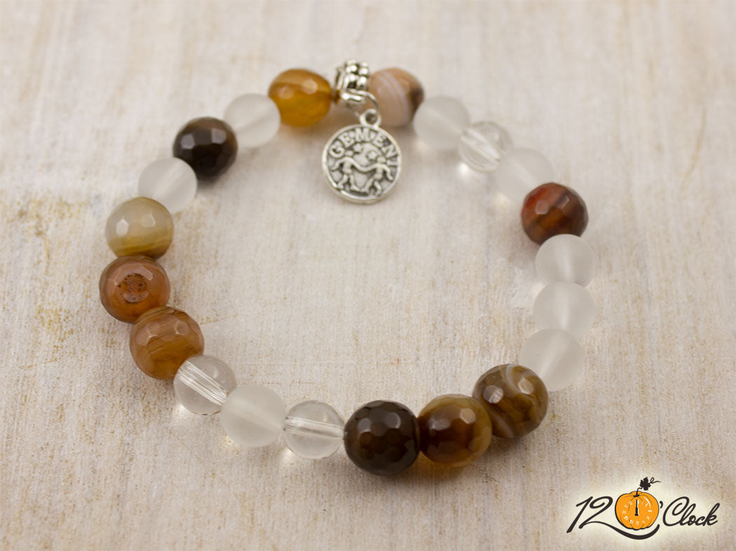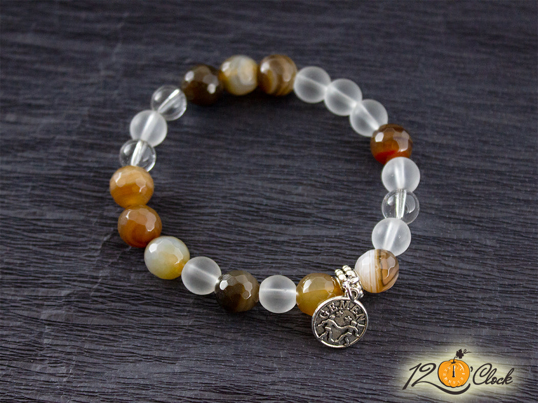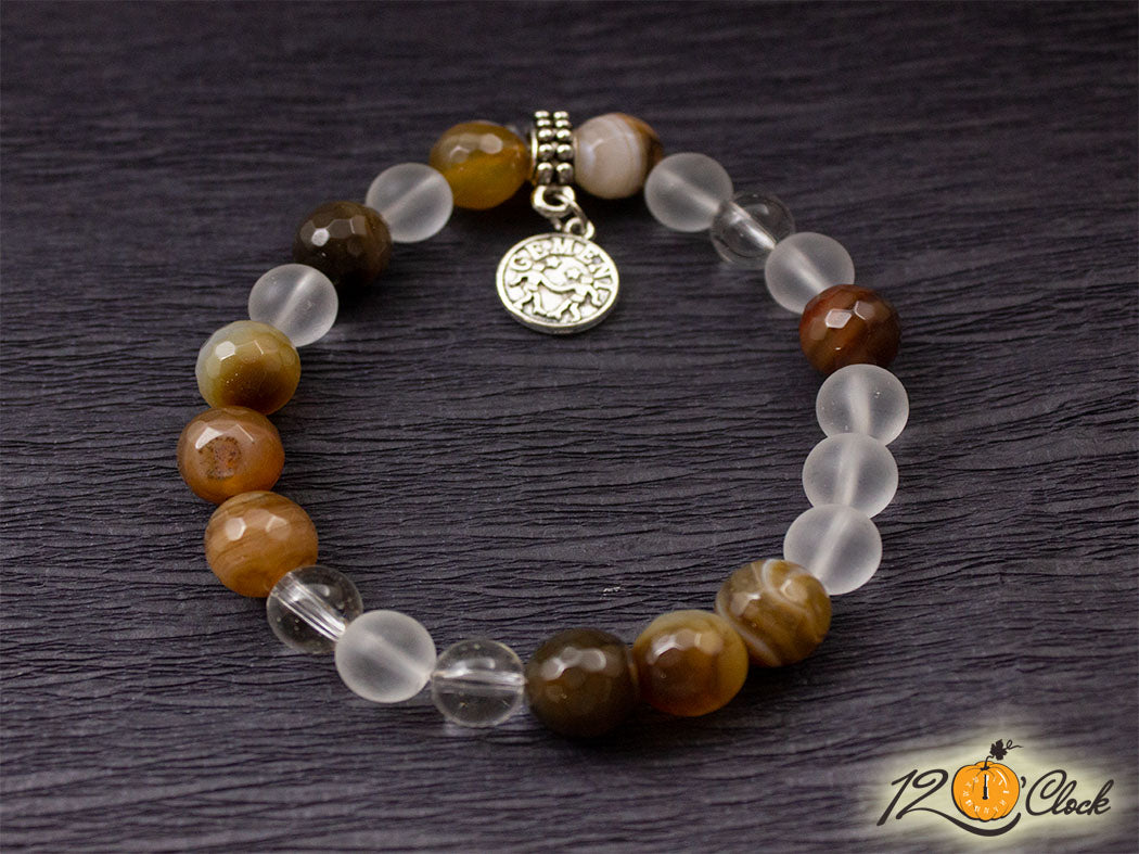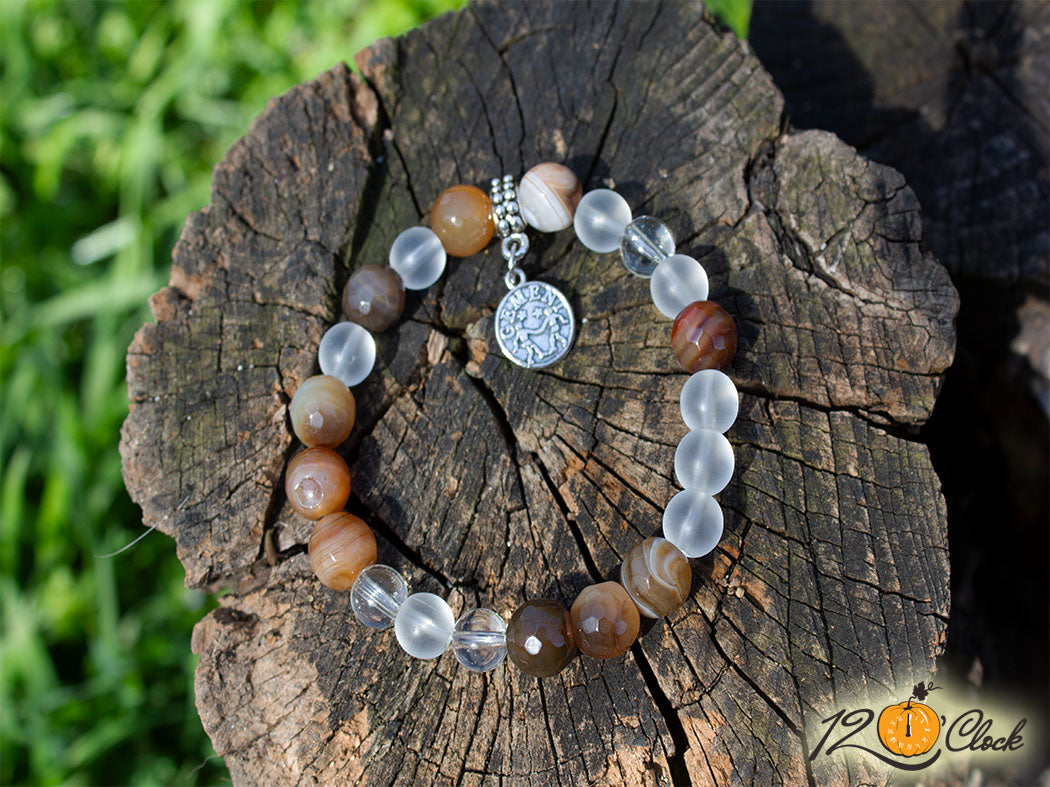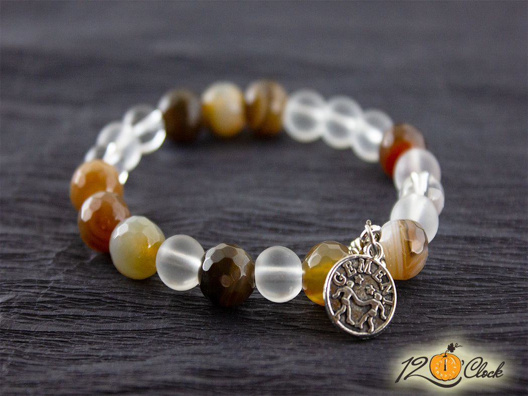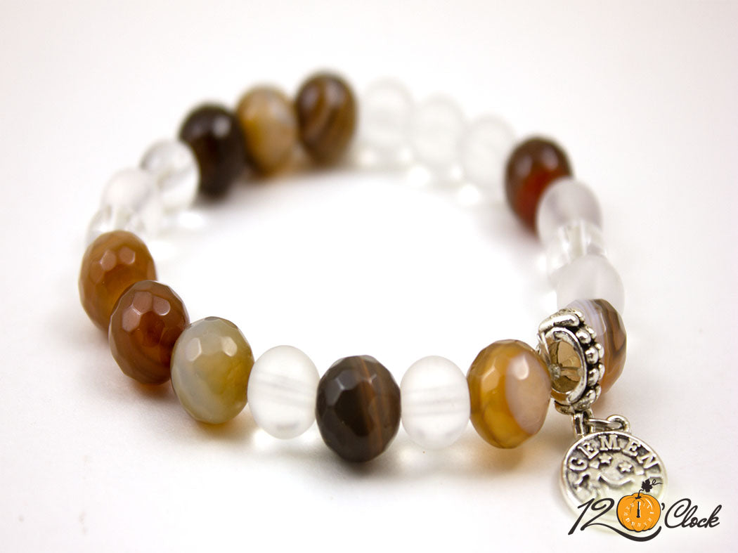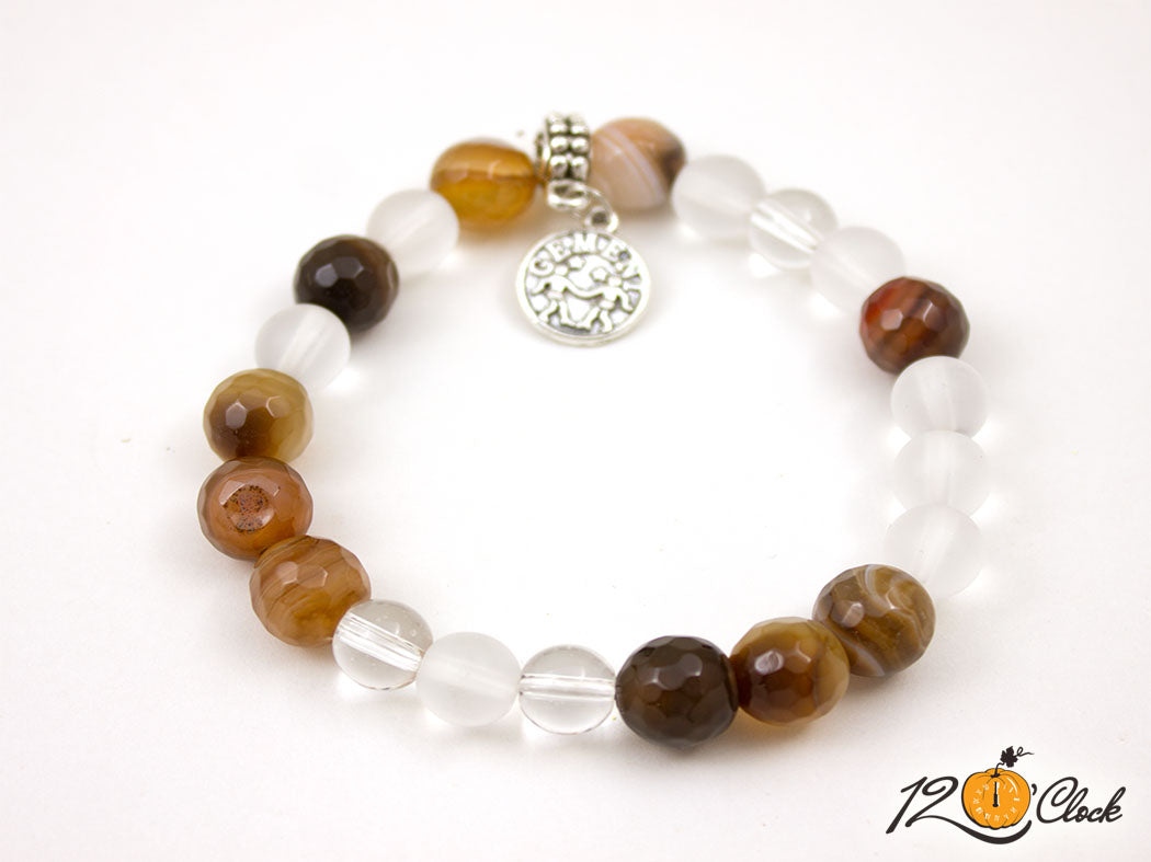 Гривна "Кафяв ивчест ахат,планински кристал и планински кристал мат" - зодия Близнаци