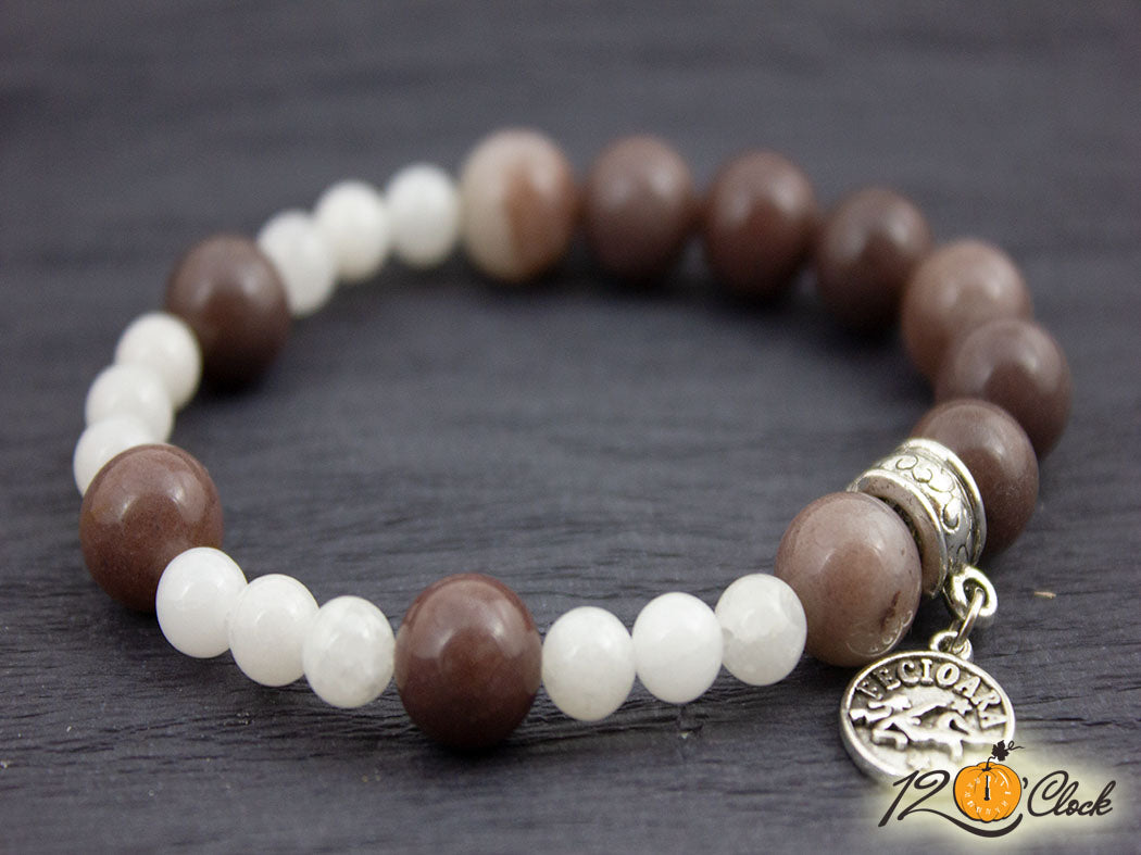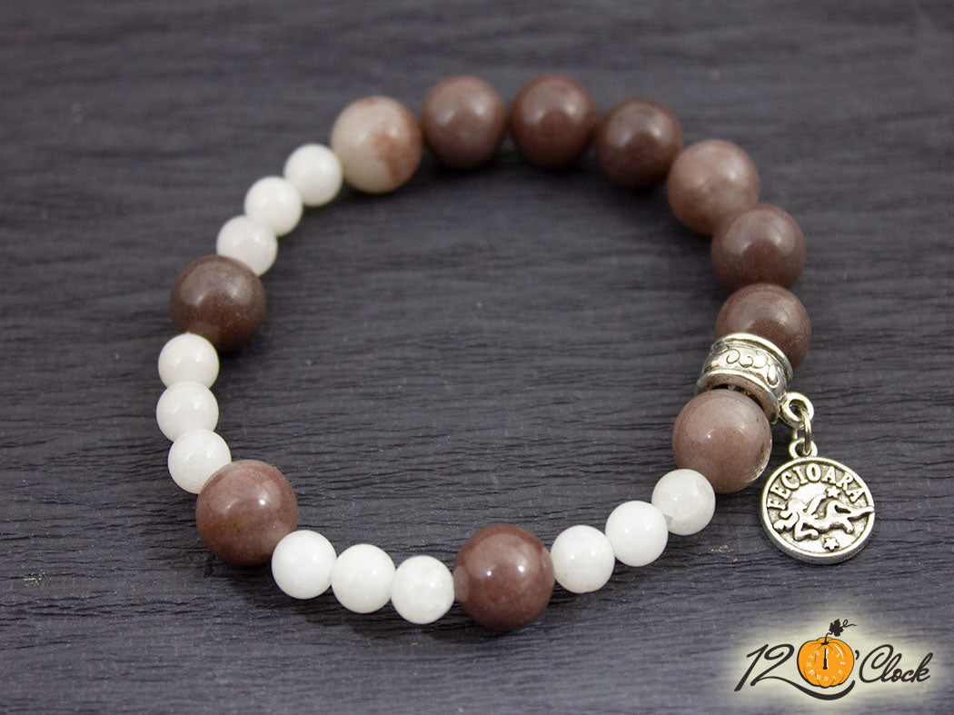 Ръчно изработена гривна с еластична корда, метален пръстен със зодиакална висулка и страхотно съчетание от авантюрин 10мм и халцедон 6мм.