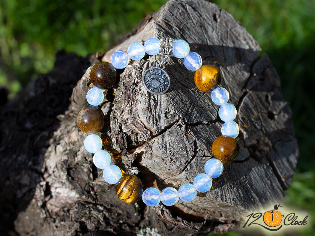 Гривна "Тигрово око и лунен камък" - зодия Рак