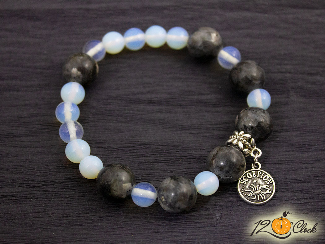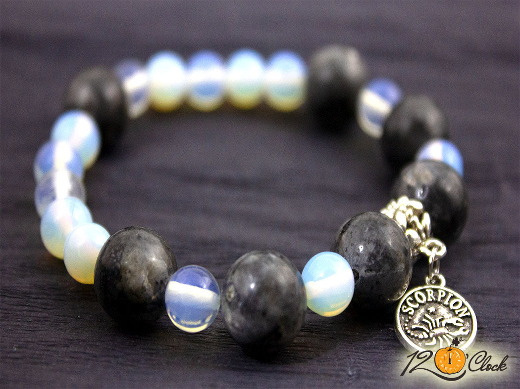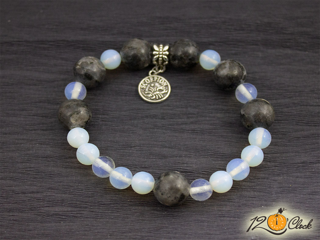 Гривна "Лабрадорит и лунен камък" - зодия Скорпион