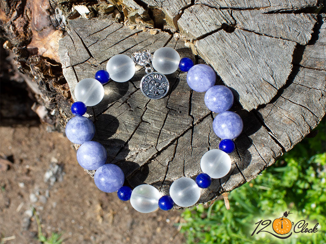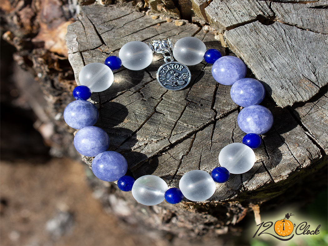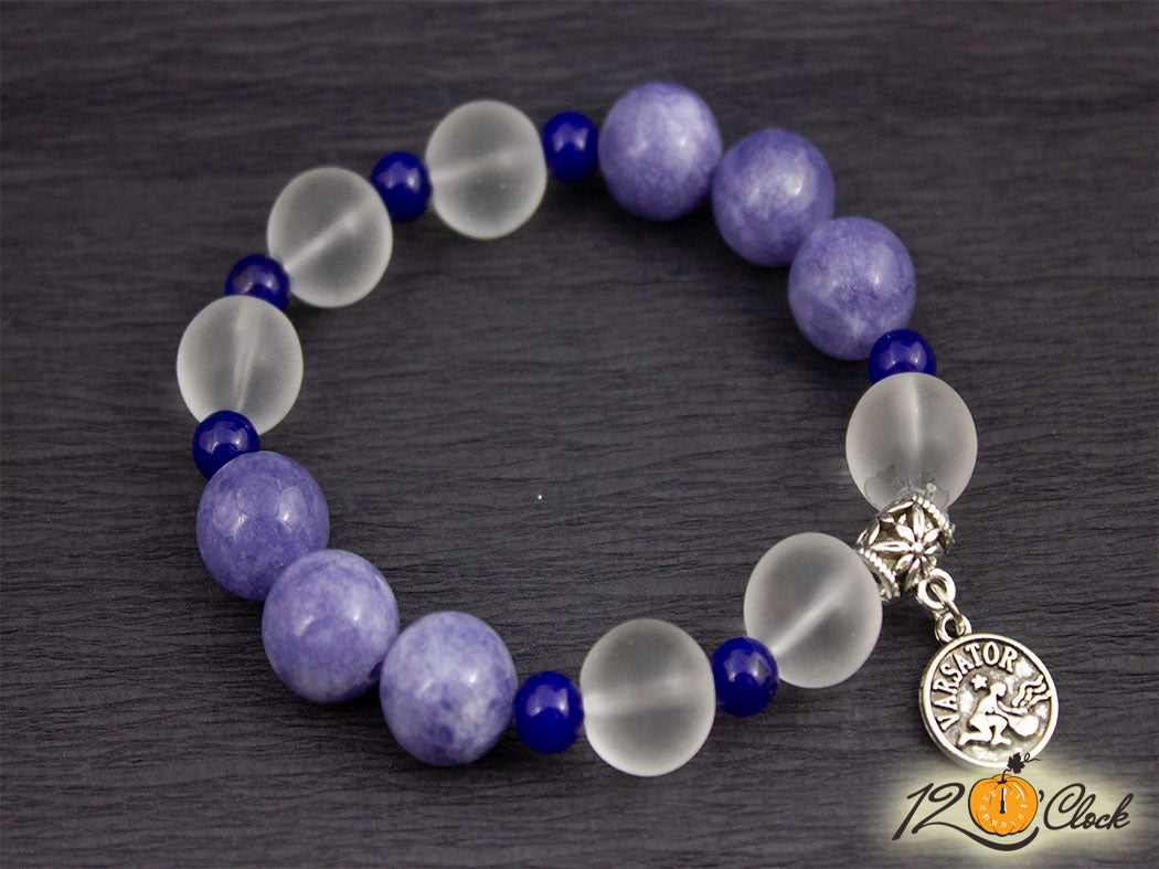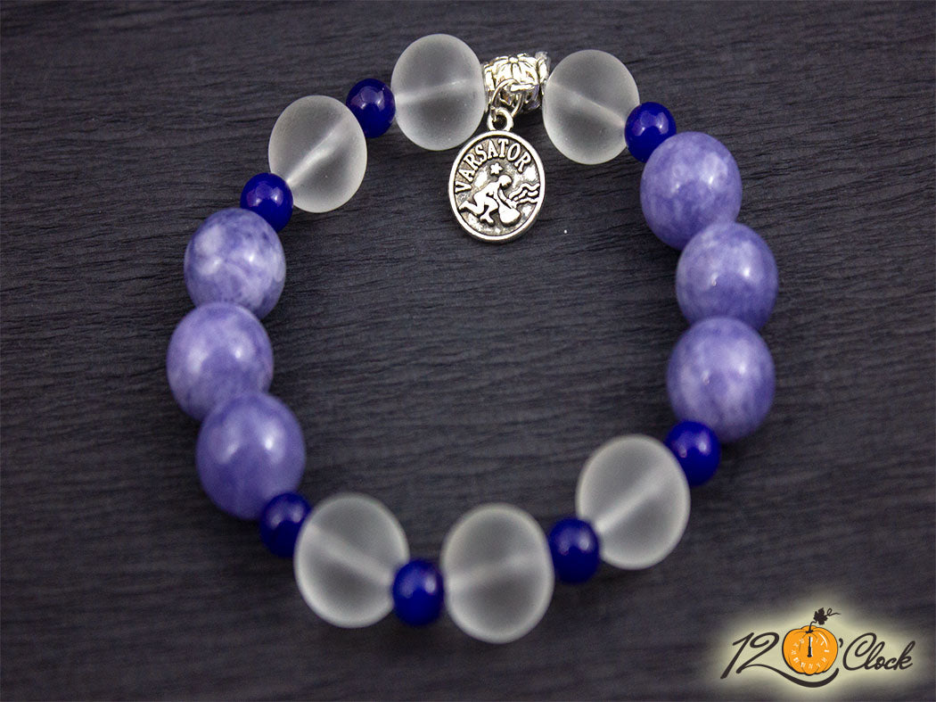 Гривна "Аквамарин, тъмно син ахат и планински кристал" - зодия Водолей