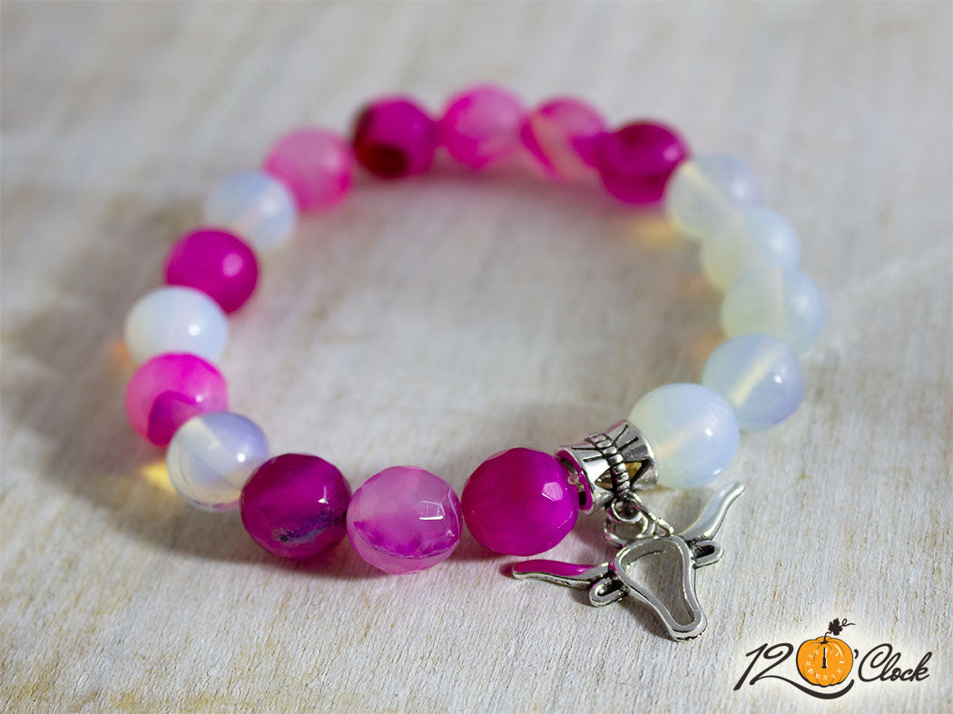 Гривна "Годината на металния бик" -лунен камък и розов ивчест ахат