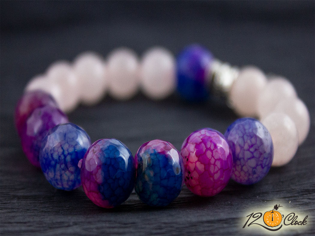 Гривна "Годината на металния бик" -синьо розов лилав драконов ахат и розов кварц