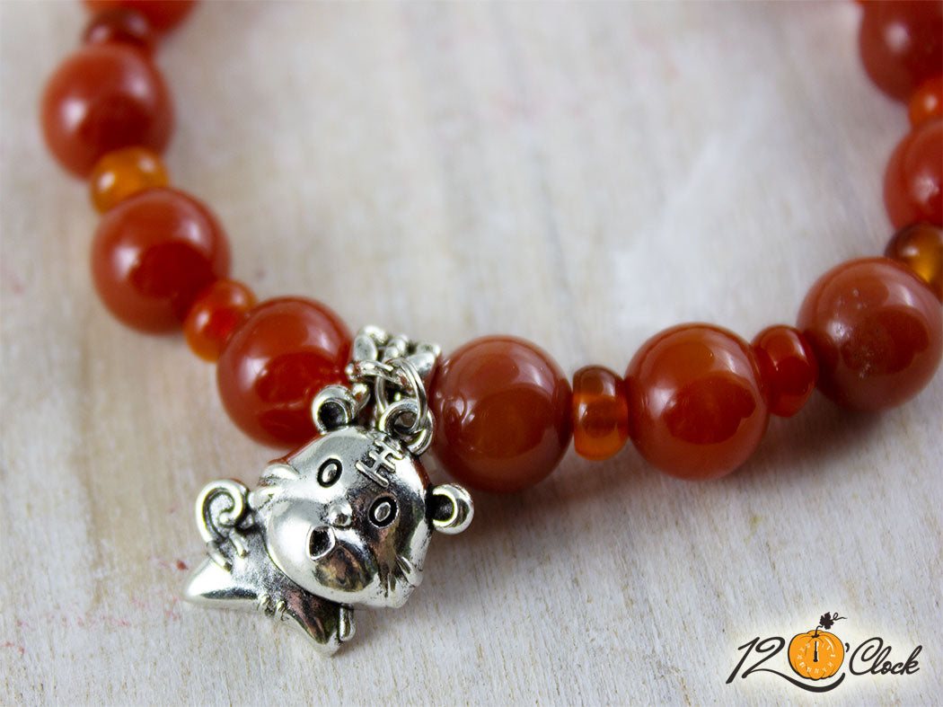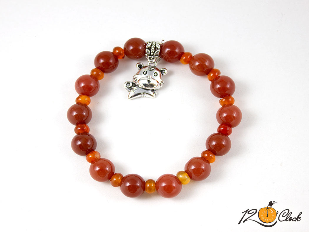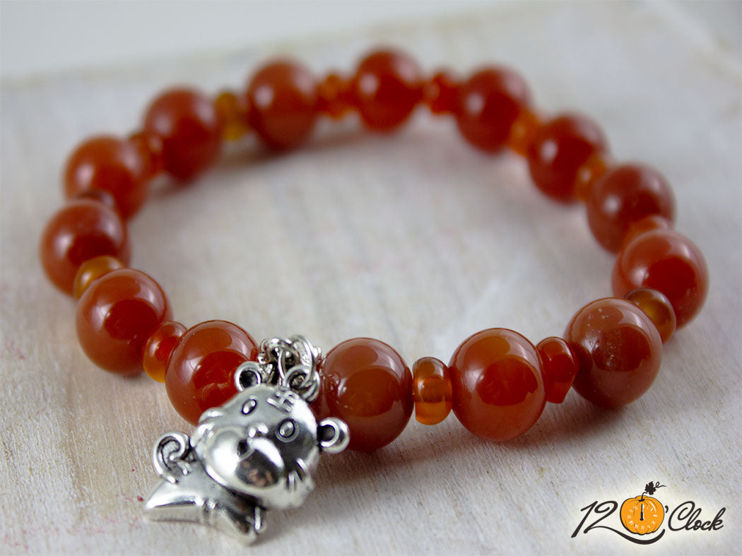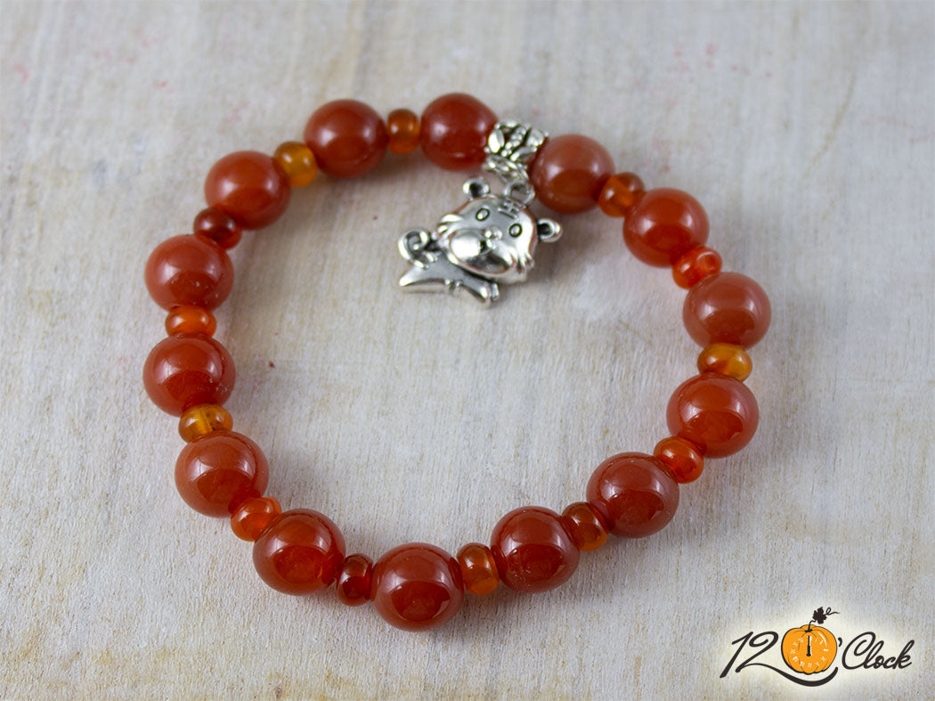 Ръчно изработена гривна с еластична корда, разделител, халка, символ на тигър и камъни от карнеол 10 мм.