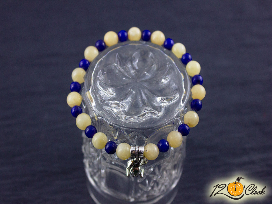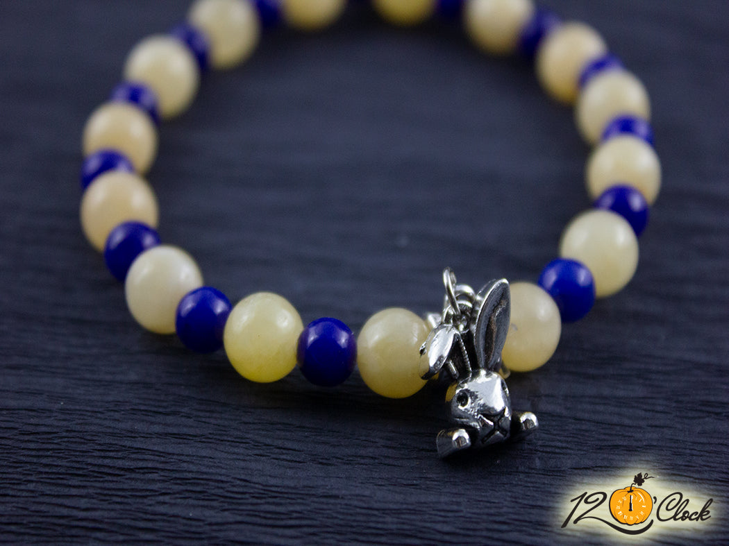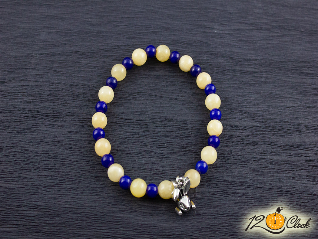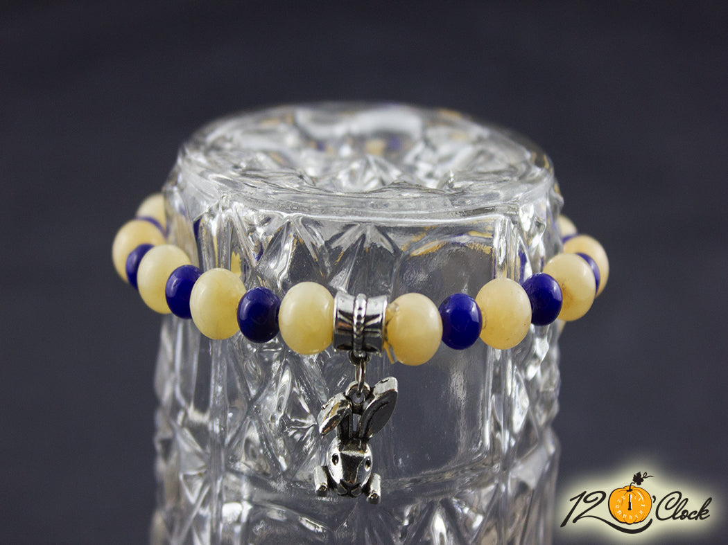 Гривна "Годината на Черния Воден Заек" – жълт жадеит и тъмно син ахат