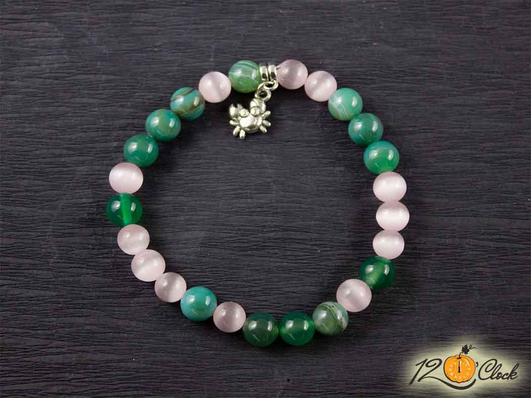 Гривна "Зелен ивчест ахат и котешко око" - зодия Рак