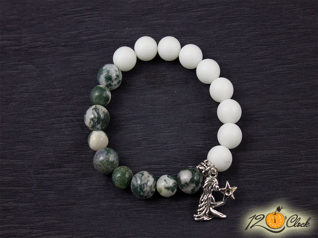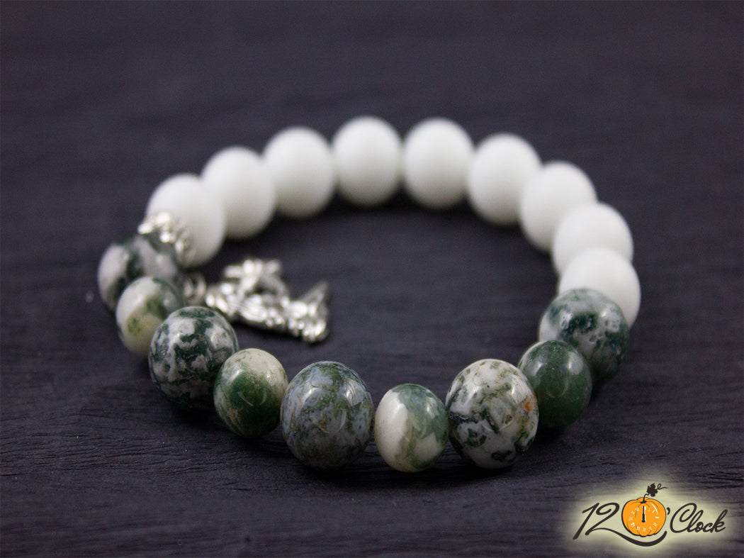 Гривна "Мъхов и бял ахат" - Зодия Дева