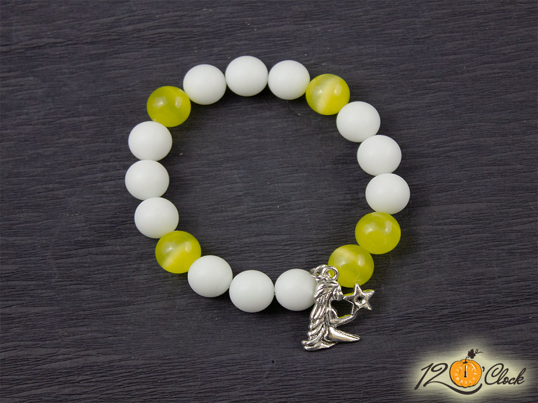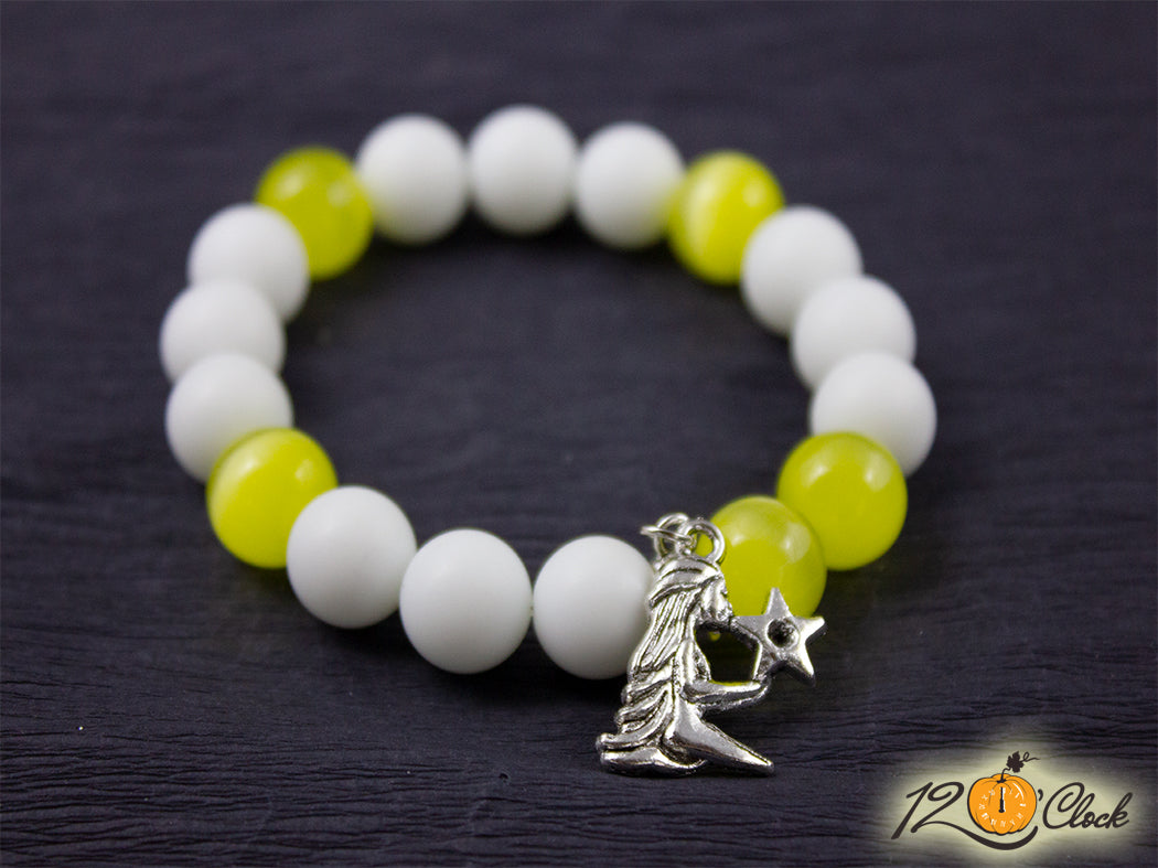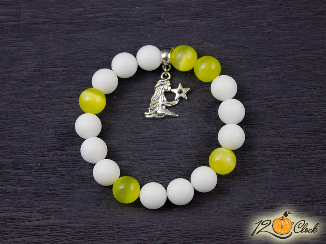 Гривна "Жълто котешко око и бял ахат" - Зодия Дева