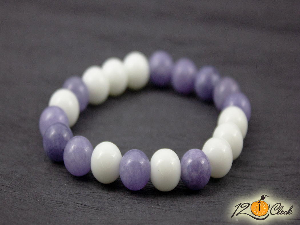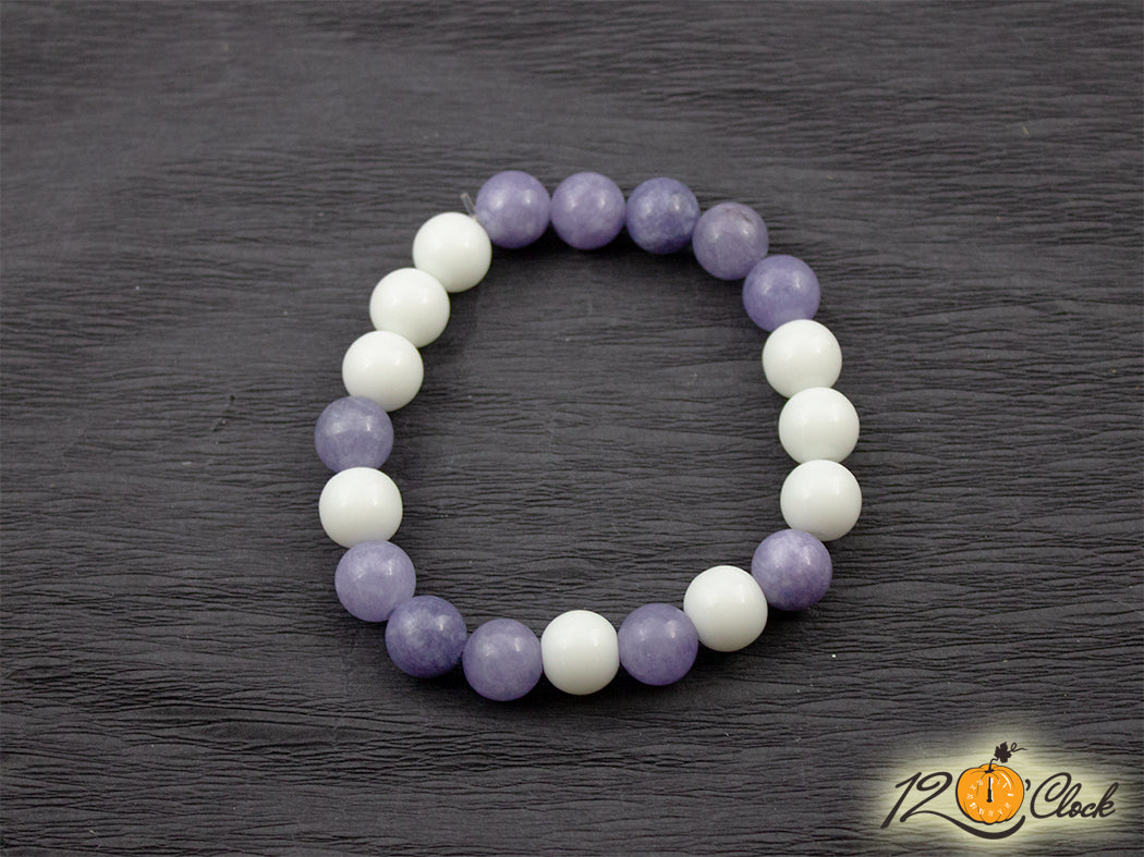 Ръчно изработена гривна с основа еластична корда и камъни от аквамарин 10мм и бял ахат 10мм
