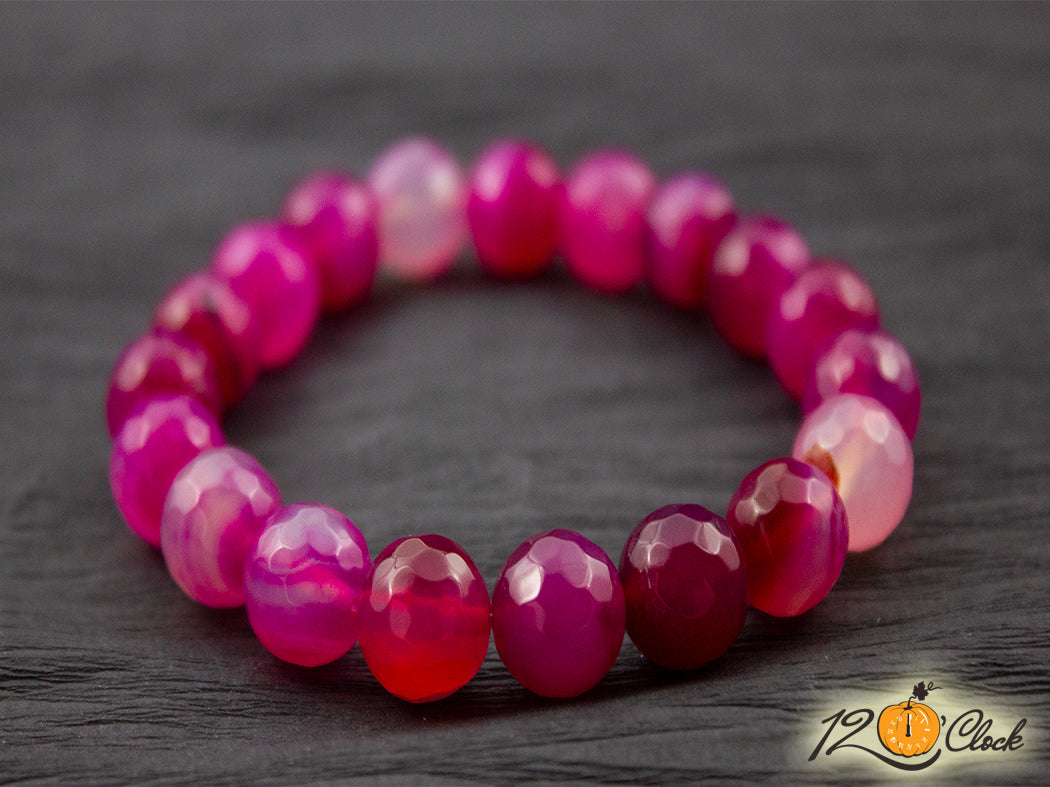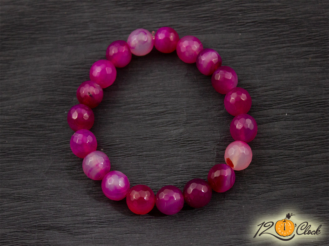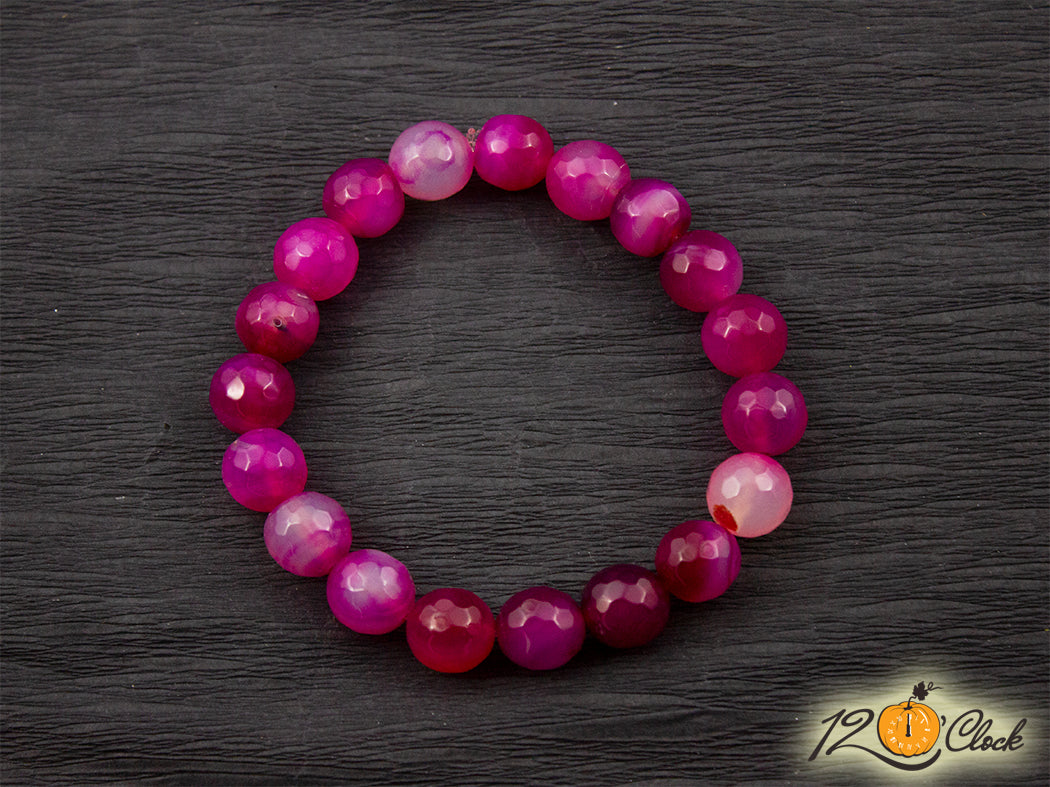 Ръчно изработена гривна с основа еластична корда и камъни от розов ивчест фасетиран ахат 10мм