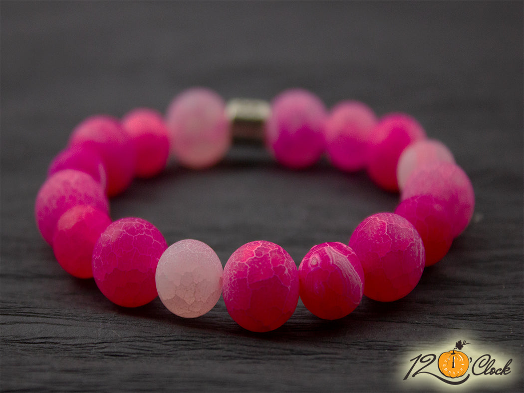 Гривна от розов драконов ахат мат 10 мм и 12 мм, в комбинация със сребриста зодия.