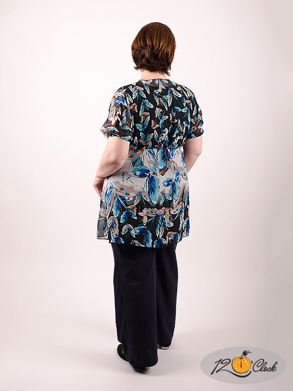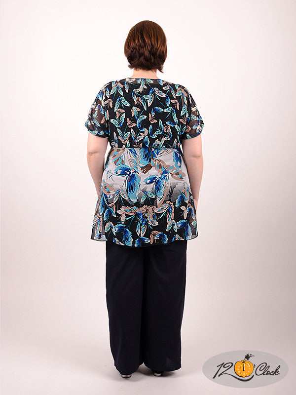 Разкроена от талията туника, с ръкав ``прилеп`` и V-образно деколте. Хастара на туниката е отделен и е изработен от черна мрежа